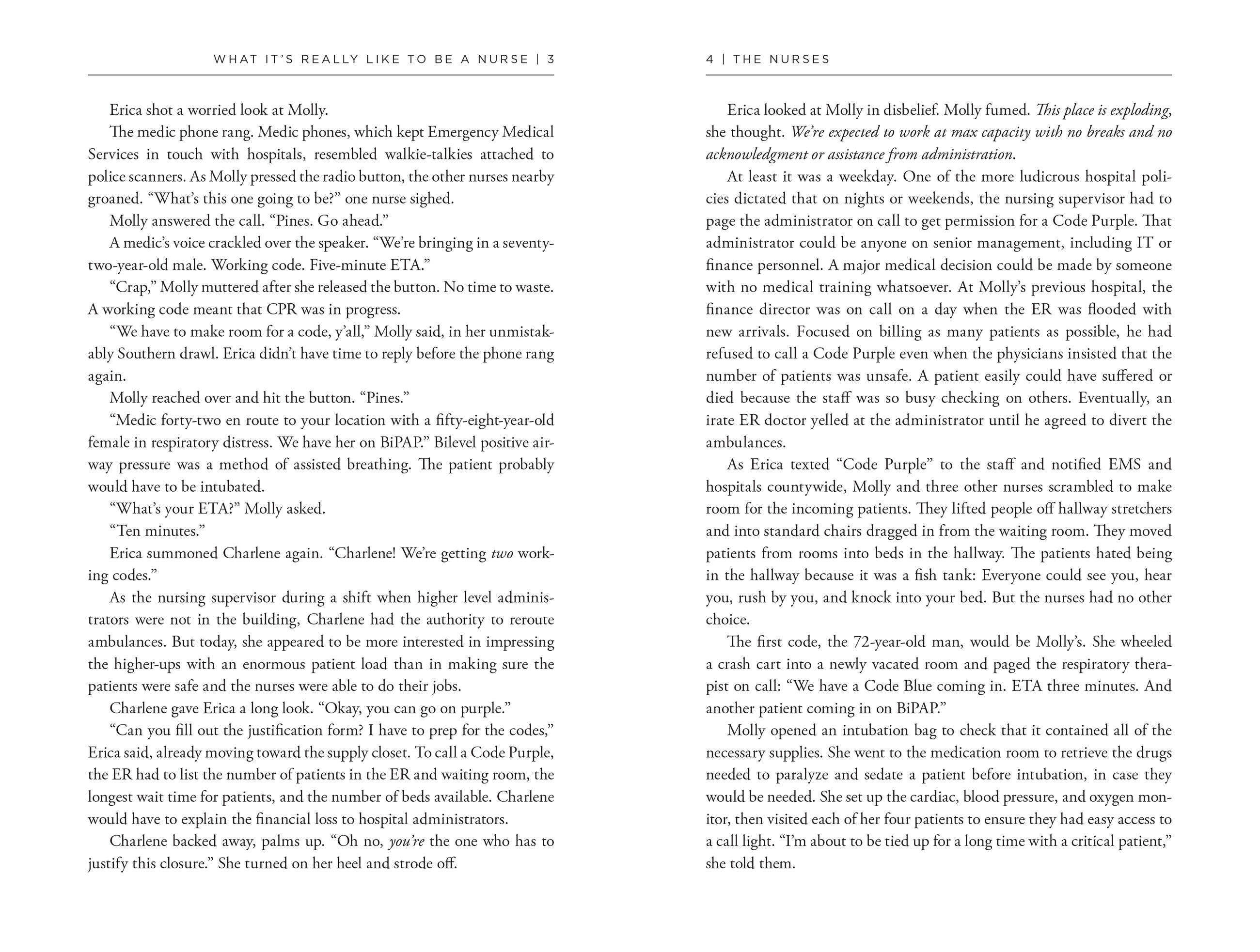 Nurses is the compelling story of the year in the life of four nurses, and the drama, unsung heroism, and unique sisterhood of nursing—one of the world’s most important professions (nurses save lives every day), and one of the world’s most dangerous, filled with violence, trauma, and PTSD.