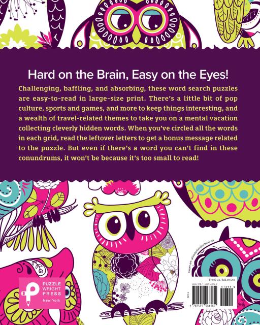 Challenging, baffling, and absorbing, these word search puzzles are easy-to-read in large-size print. There’s a little bit of pop culture, sports and games, and more to keep things interesting, and a wealth of travel-related themes to take you on a mental vacation collecting cleverly hidden words. When you’ve circled all the words in each grid, read the leftover letters to get a bonus message related to the puzzle. But even if there’s a word you can’t find in these conundrums, it won’t be because it’s too small to read!