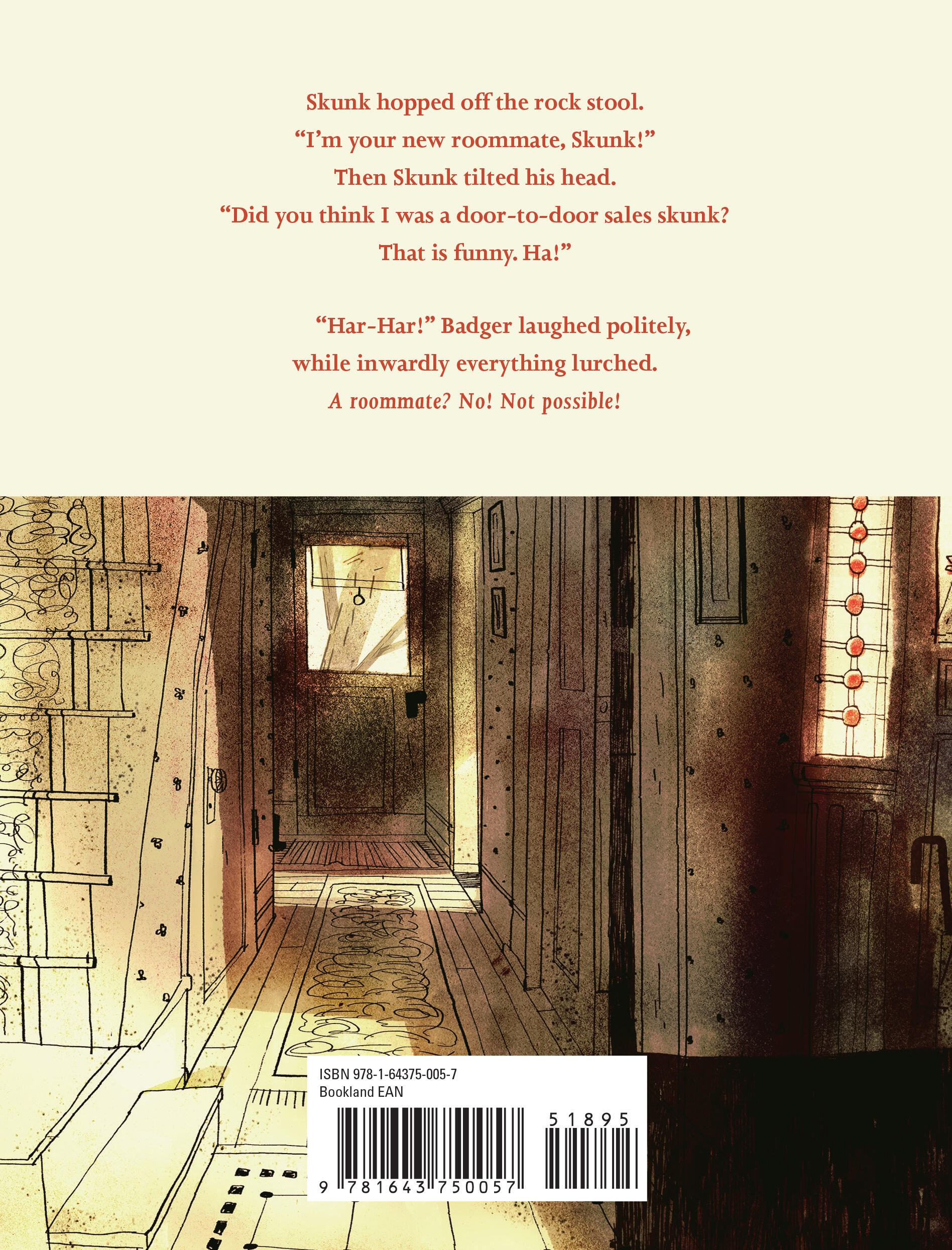 No one wants a skunk. They are unwelcome on front stoops. They should not linger in Important Rock Rooms. Skunks should never, ever be allowed to move in. But Skunk is Badger’s new roommate, and there is nothing Badger can do about it.