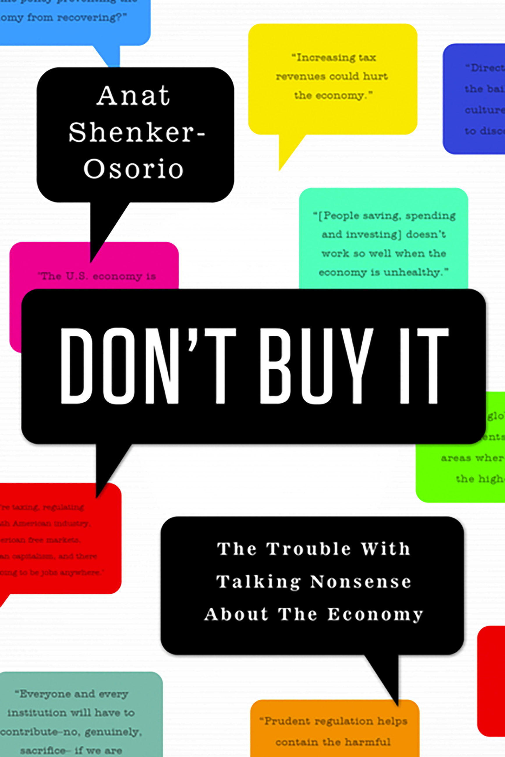 In Don’t Buy It Shenker-Osorio diagnoses our economic discourse as stricken with faulty messages, deceptive personification, and, worst of all, a barely coherent concept of what the economy actually is. Opening up the business section of most newspapers or flipping on cable news unleashes an onslaught of economic doomsaying that treats the economy as an ungovernable force of nature. Alternately, by calling the economy “unhealthy” or “recovering” as we so often do, we unconsciously give it the status of a living being. No wonder Americans become willing to submit to any indignity required to keep the economy happy. Tread lightly, we can’t risk irritating the economy!
