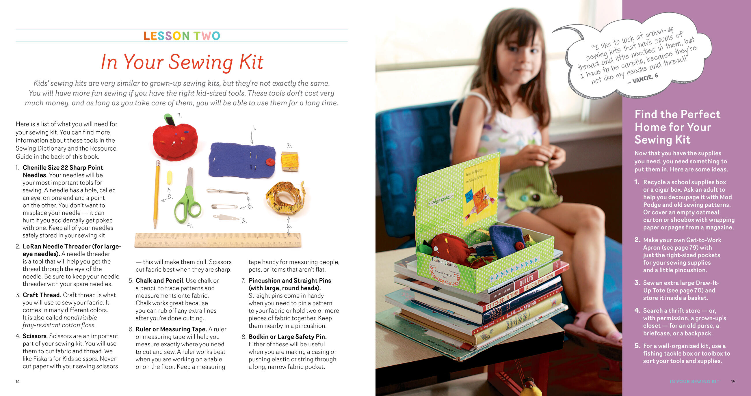 This inspiring guide includes 21 fun sewing projects for children ages 5 and up. With easy-to-follow illustrated instructions and full-sized, ready-to-use paper patterns, young crafters will quickly be sewing up colorful pillows, potholders, dolls, blankets, and more. These kid-tested projects require only minimal supervision and most can be made using simple hand stitches, so no sewing machine is required. With plenty of encouragement and helpful tips, Sewing School ® helps young sewers develop their skills while sparking a passion that will last a lifetime.