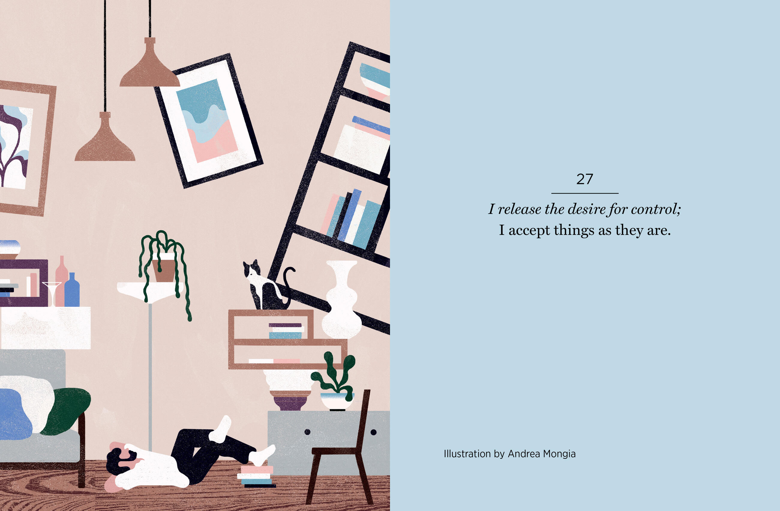 “For all who are curious, willing, and open to working with our minds, Ani Trime has created the perfect vehicle to move, inspire, and guide us. These weekly affirmations, accompanied by such cool and unique illustrations, remind us simply yet powerfully that the choice to be free is ours. So, please feed your mind and keep this wonderful book next to your cushion or bedside, and most importantly, in your heart.” — Steve Buscemi, actor