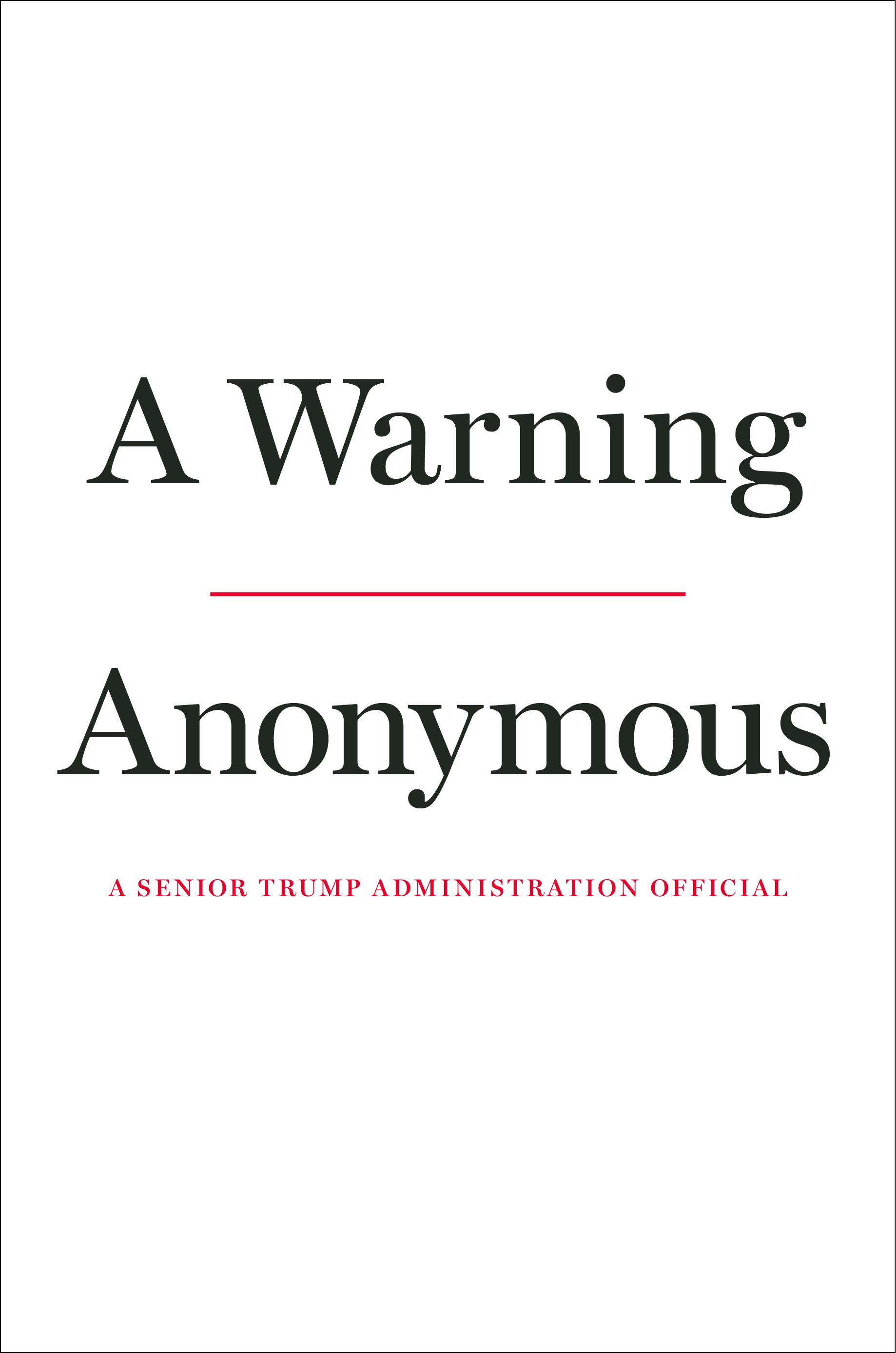 #1 New York Times and #1 Wall Street Journal bestseller: An unprecedented behind-the-scenes portrait of the Trump presidency from the anonymous senior official whose first words of warning about the president rocked the nation’s capital.