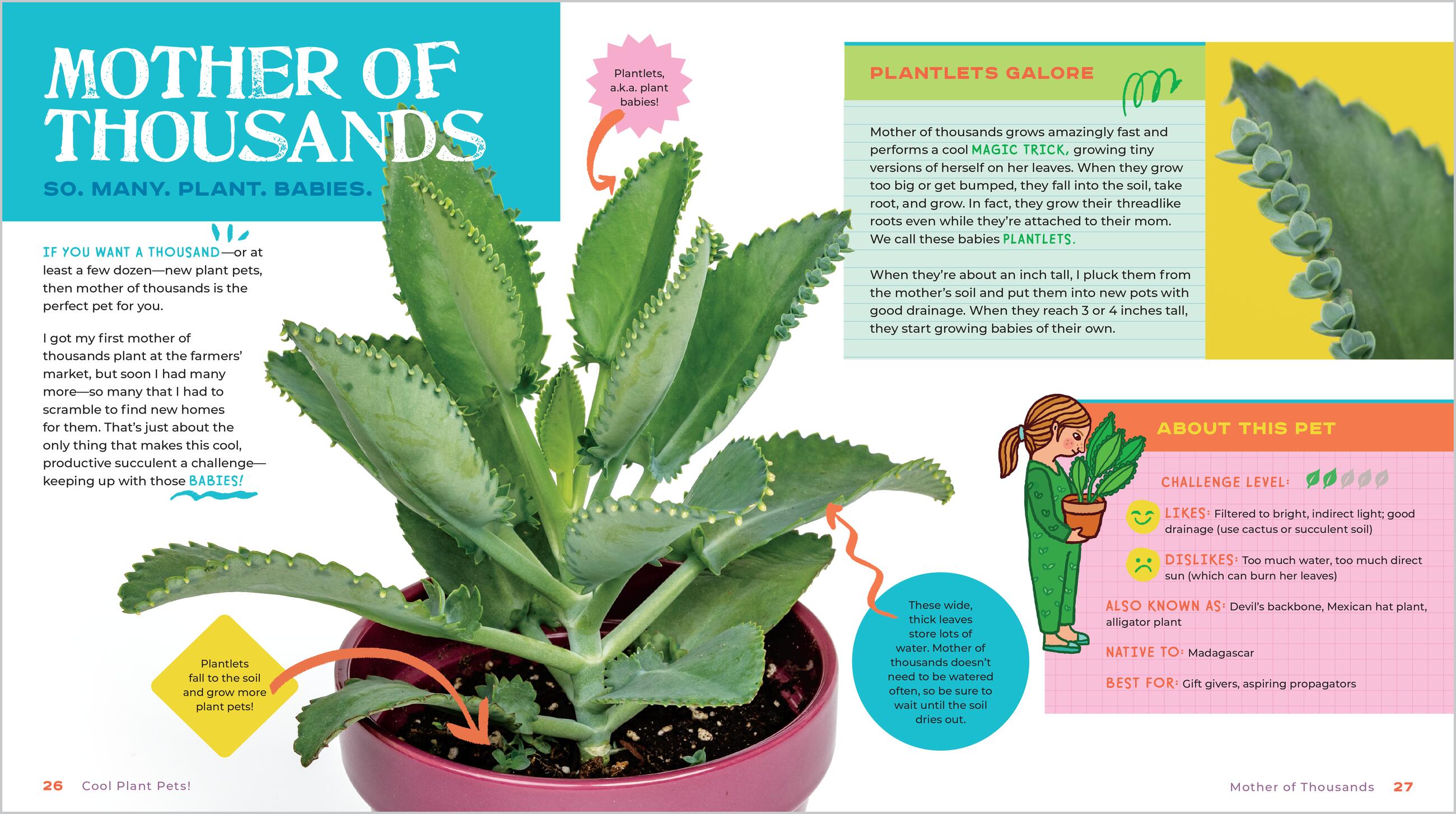 Maybe every kid can’t have an animal pet—but everyone can have a plant pet! That’s the message of ten-year-old author and houseplant enthusiast Beatrice (Bea) Boggs Allen. In this friendly book written specially for kids, Bea tells all about the easiest, most fun, and affordable plants that can be grown indoors in pots. She shares her first-hand tips on caring for each plant, along with descriptions of each one’s unique attributes, from air plants to succulents, terrariums, and even carnivorous plants—the ones that eat insects! The lively pages show up-close photos of each plant, along with funny illustrations that reflect Bea’s cheeky voice. Kids ages 7 and up will love Bea’s ideas for activities they can do to enjoy these amazing plants and share them with friends and family.
