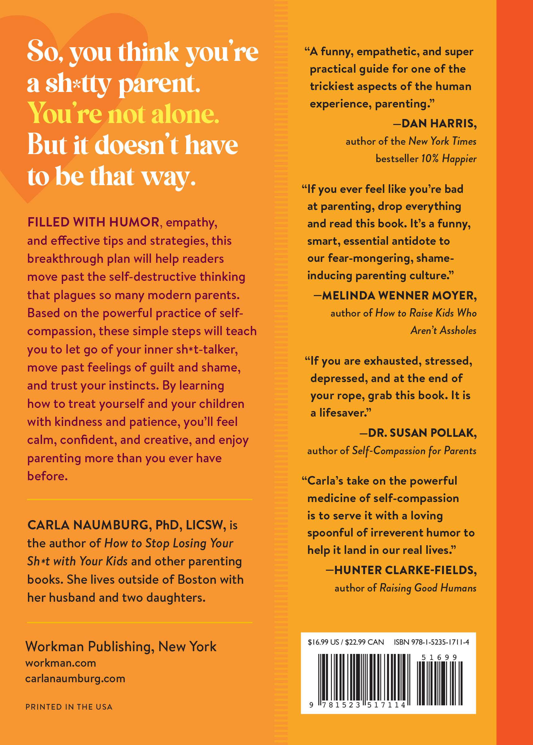 Carla Naumburg gets it. She understands how impossible it is to parent these days, and how we beat ourselves up for everything that goes wrong. Not only does Carla have your back, she speaks with a voice that is both reassuring and laugh-out-loud funny, offering ways to find more joy and sanity. If you are exhausted, stressed, depressed and at the end of your rope, grab this book. It is a life saver. — Dr. Susan Pollak, co-founder, Center for Mindfulness and Compassion, Cambridge Health Alliance, Harvard Medical School. Author, Self Compassion for Parents: Nurture your Child by Caring for Yourself.