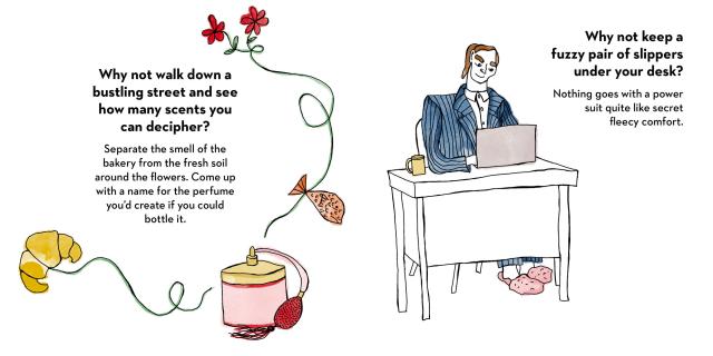 This small, illustrated gift book encourages readers to rekindle their sense of childhood joy through whimsical illustrations and playful ways to be mindful in everyday moments.