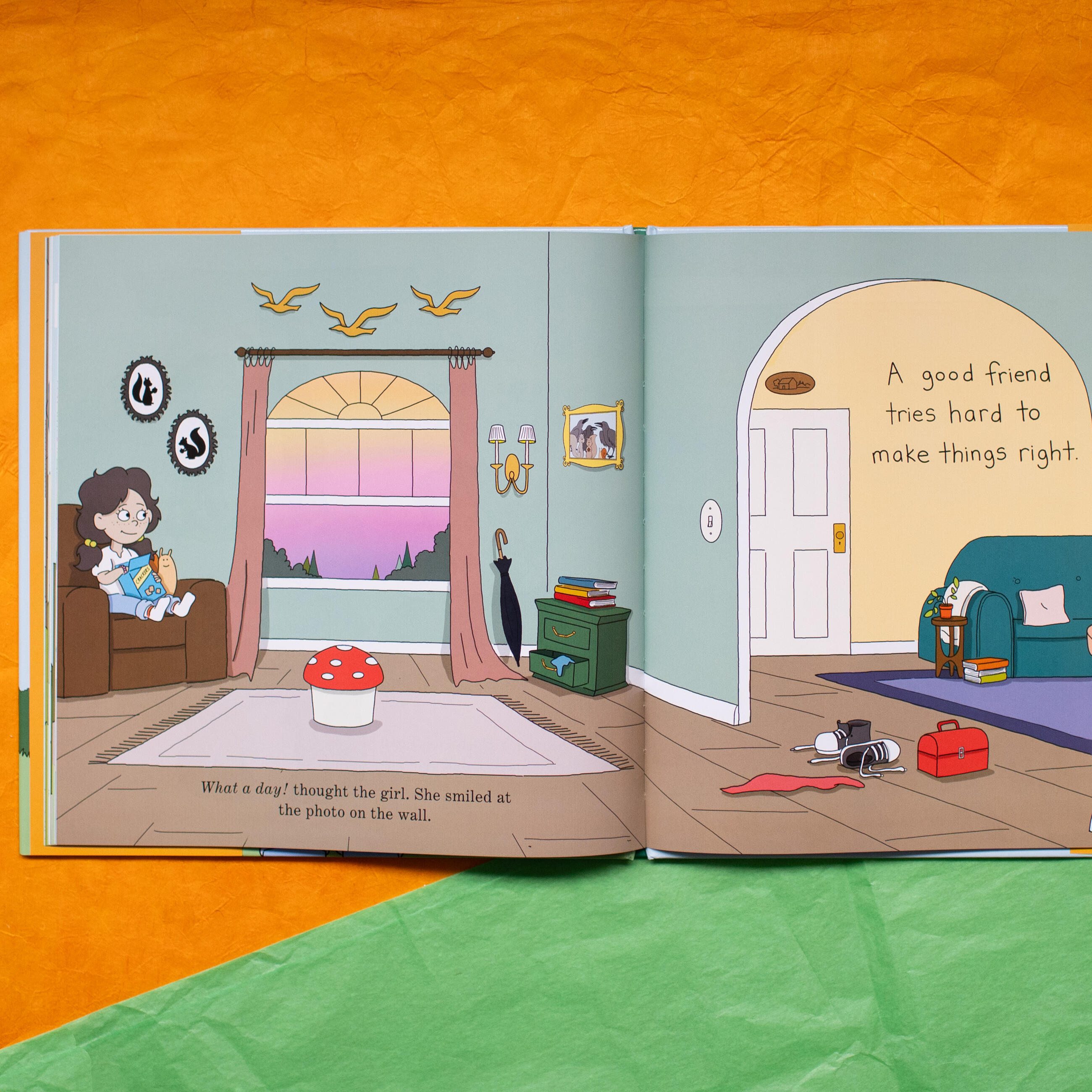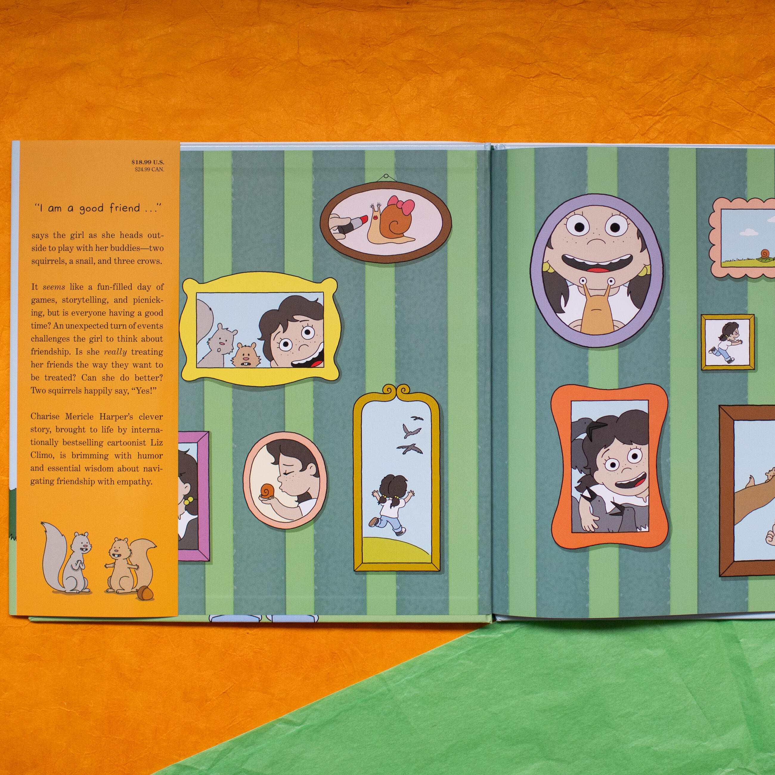 “I am a good friend!” says the girl and she heads outside to play with her buddies—two squirrels, a snail, and three crows. It’s a fun-filled day of games, picnicking, and storytelling, but is everyone having a good time? An unexpected turn of events suddenly challenges the girl to question if she’s treating her friends the way they want to be treated.