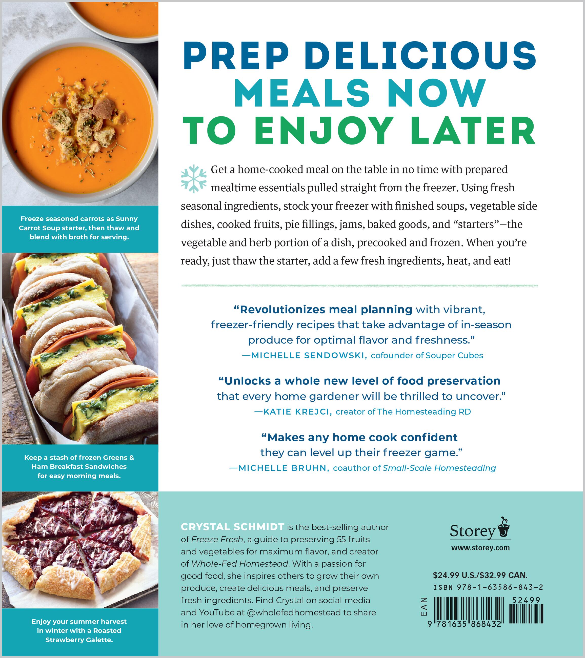 Using garden fresh vegetables and fruits, Crystal Schmidt offers a unique approach to meal prep, with 160 recipes for complete meals as well as meal starters—dishes that can be partially prepared and frozen, then combined with pantry ingredients to make a complete meal. These original recipes range from soups, dips, beverages, and main dishes to veggie sides, baked goods, frozen treats, jams, and pie fillings.