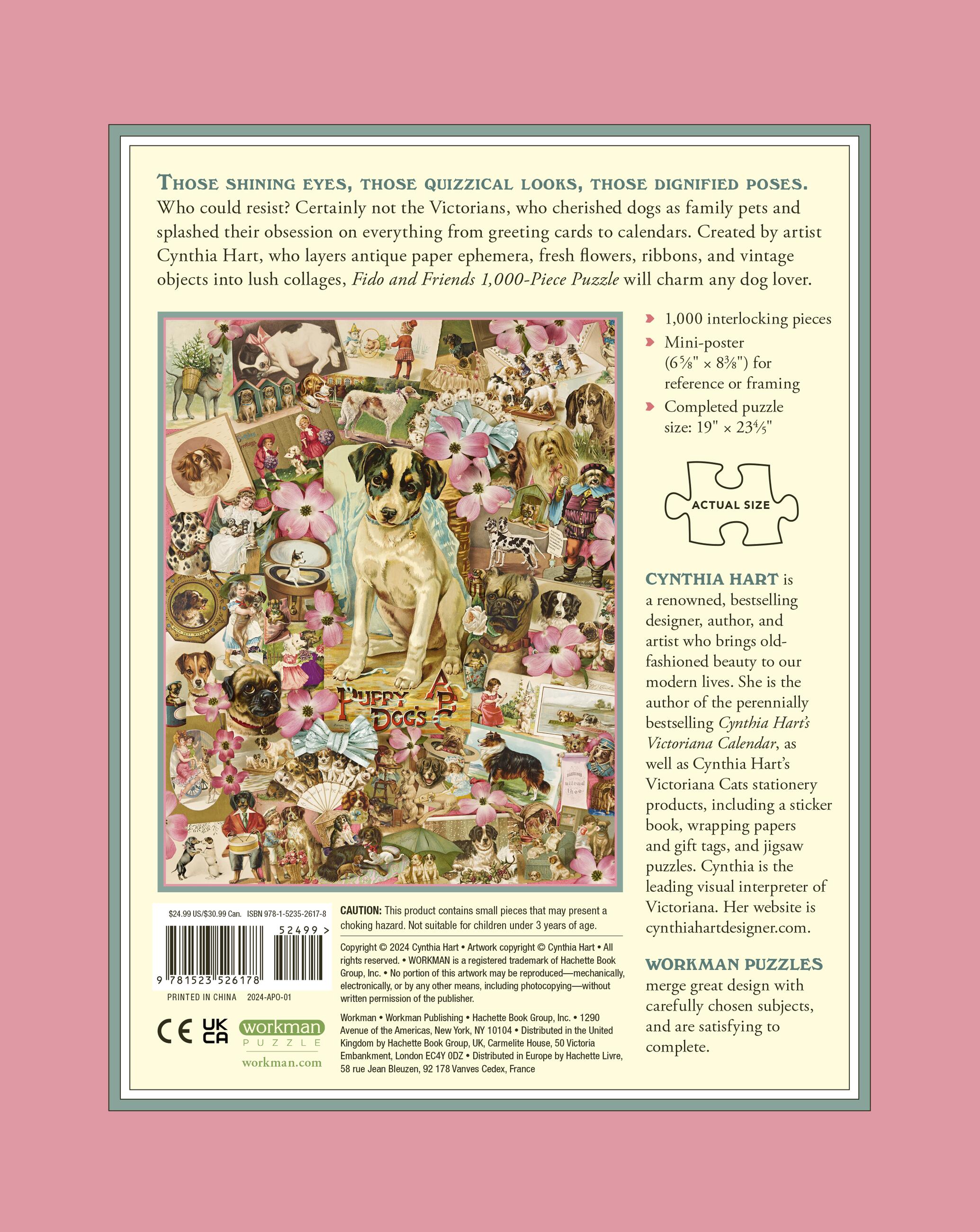 Dogs were celebrated during the Victorian era because they embodied important cultural values of the time: steadfast, loyal, courageous. They became the most popular domestic pets—Dash, a King Charles Spaniel, was considered Queen Victoria’s closest childhood companion—and were pampered just as they are today. Created by artist Cynthia Hart, who layers antique paper ephemera, fresh flowers, ribbons, and vintage objects into lush collages filled with life, color, and energy, this timeless 1,000-piece puzzle celebrates the charming personalities of the dogs that captured hearts everywhere during the 19th century.