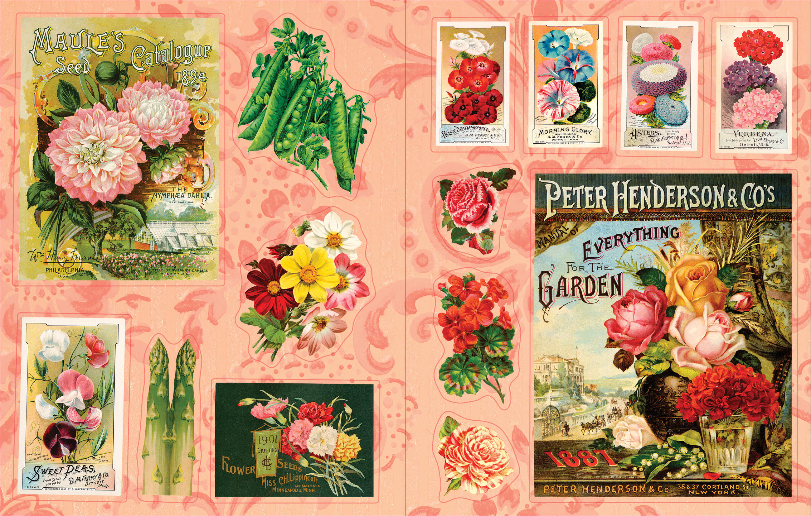 The experience of nurturing and watching things grow fosters a special kind of happiness, one cherished by the Victorians with their love of all things beautiful. A fascinating collection of more than 825 stickers, Cynthia Hart’s Victoriana Garden Delights features butterflies and blossoms, seed catalog covers and vintage garden views, vegetable people and flower fairies—a whimsical marriage of realistic and fanciful images that evoke the splendor, elegance, and joy of Victorian-era gardening.