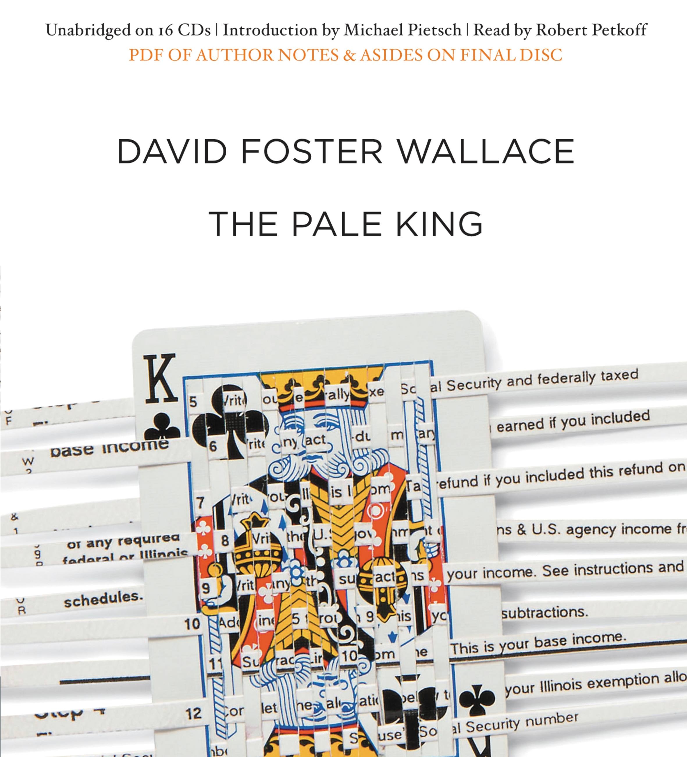 The Pale King remained unfinished at the time of David Foster Wallace's death, but it is a deeply compelling and satisfying novel, hilarious and fearless and as original as anything Wallace ever undertook. It grapples directly with ultimate questions — questions of life's meaning and of the value of work and society — through characters imagined with the interior force and generosity that were Wallace's unique gifts. Along the way it suggests a new idea of heroism and commands infinite respect for one of the most daring writers of our time.