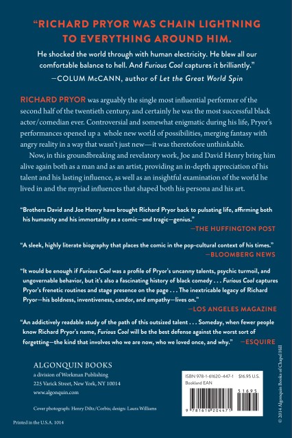 “Furious Cool is a fabulous history, alive with fascinating characters both reacting to and creating world-changing events; it is a study of the seismic cultural shifts of the second half of the twentieth century, when everything we knew about music, literature, television, theater, and yes, comedy, was turned upside down and sideways, blowing our minds and resetting all expectations; it is a documentary of epic proportions, based as it is upon mountains of research (all of it refined, sifted, and clarified); it is a love song and a dirge and silly ditty and a symphony of every emotion . . . Every person on the planet has to find his or her way to the truth of life's unfairness, beauty, sadness, opportunities and limits. That I could get myself part way there riding on waves of laughter was a wonderful gift, and it was Pryor's gift. Furious Cool reminds me of his present, and his presence, and for this, I give thanks to the Henry brothers.” I>The Huffington Post