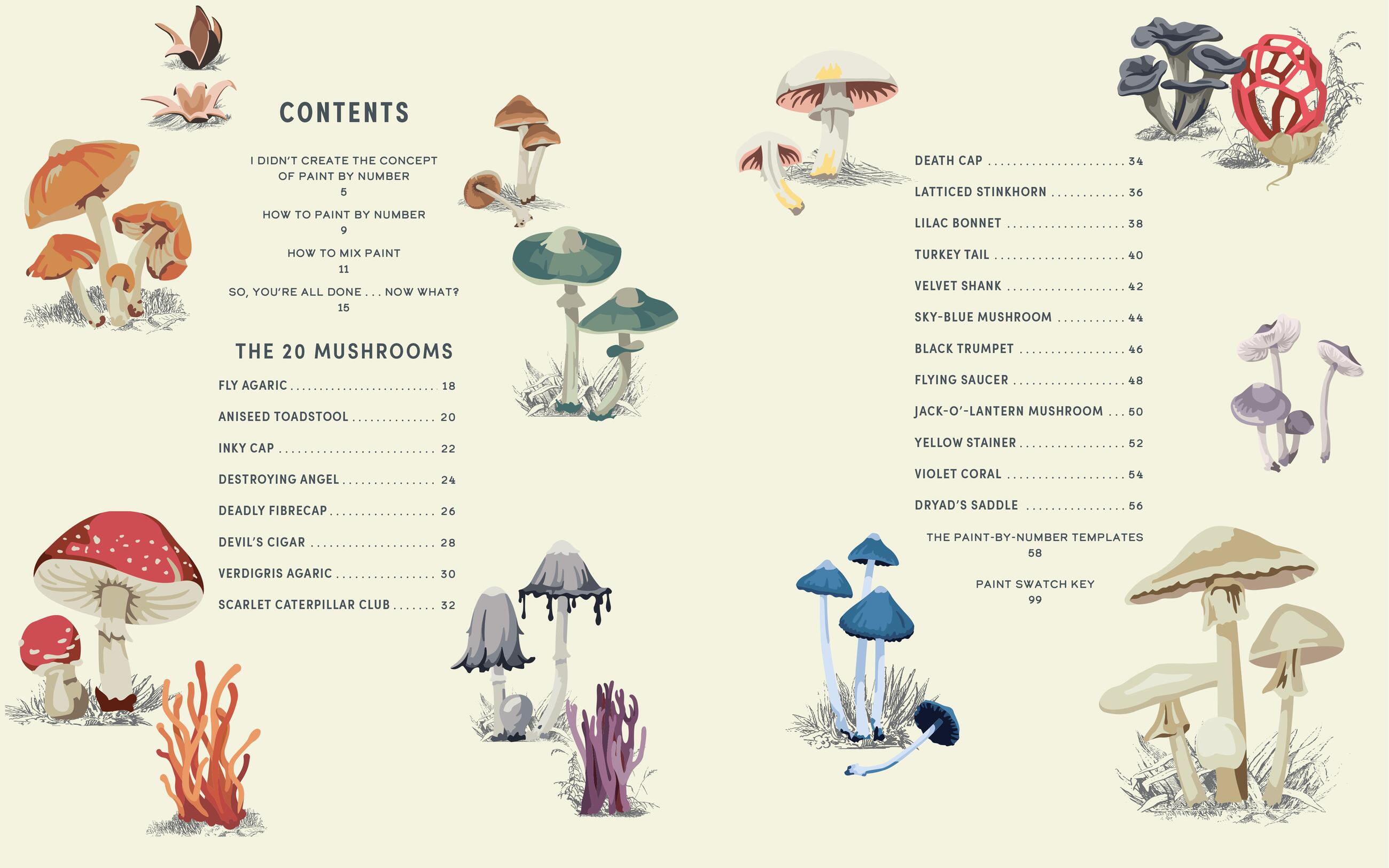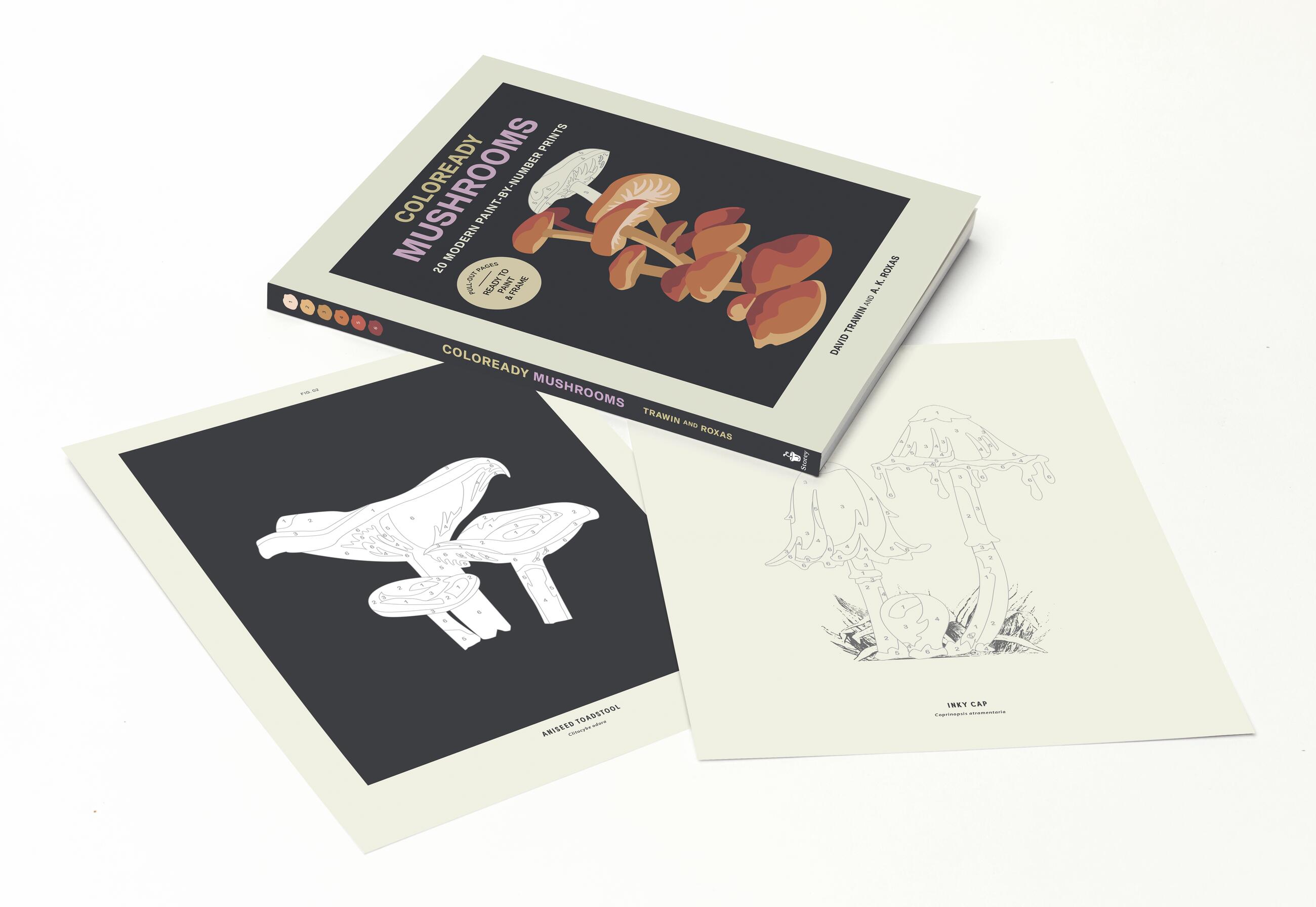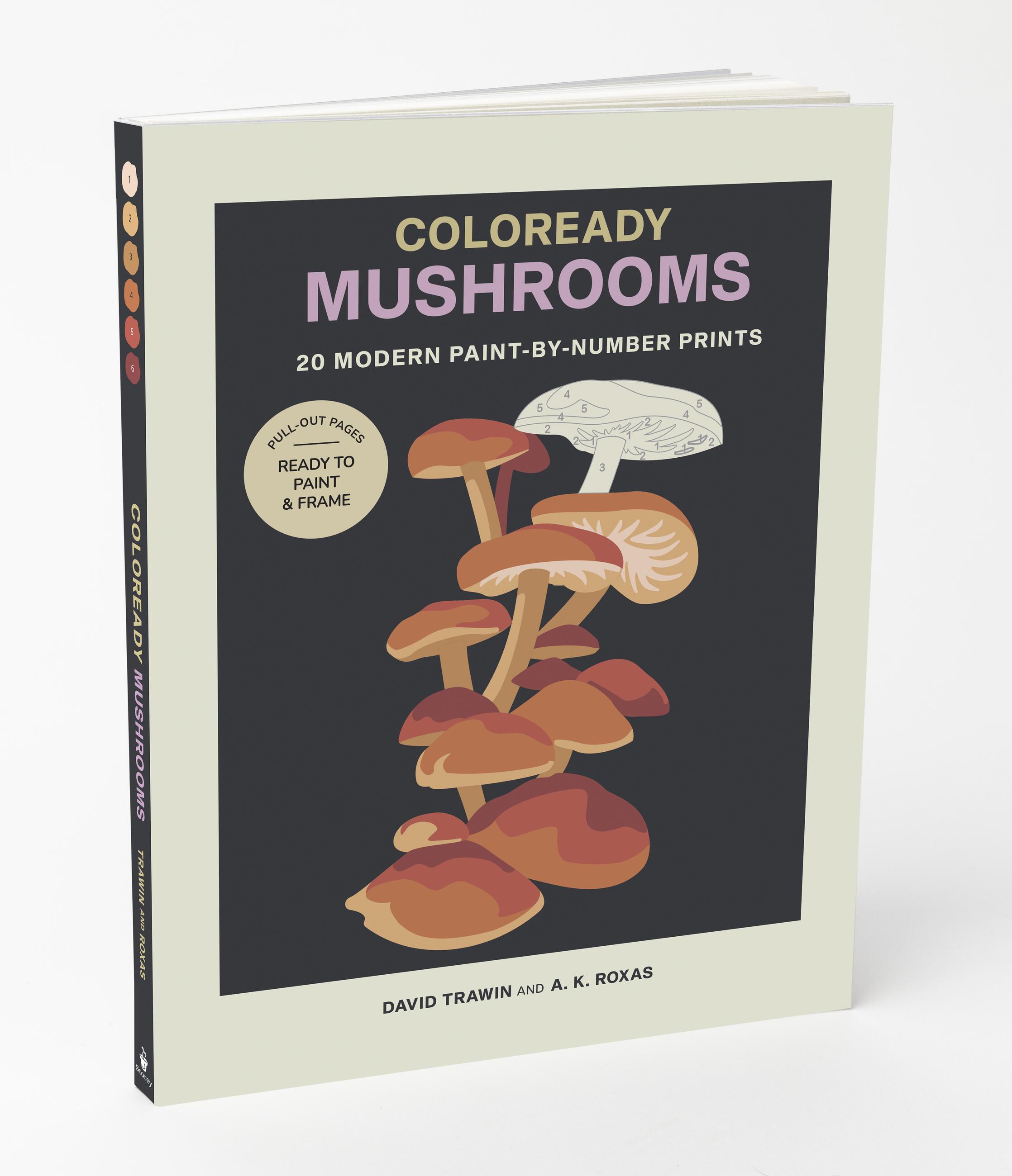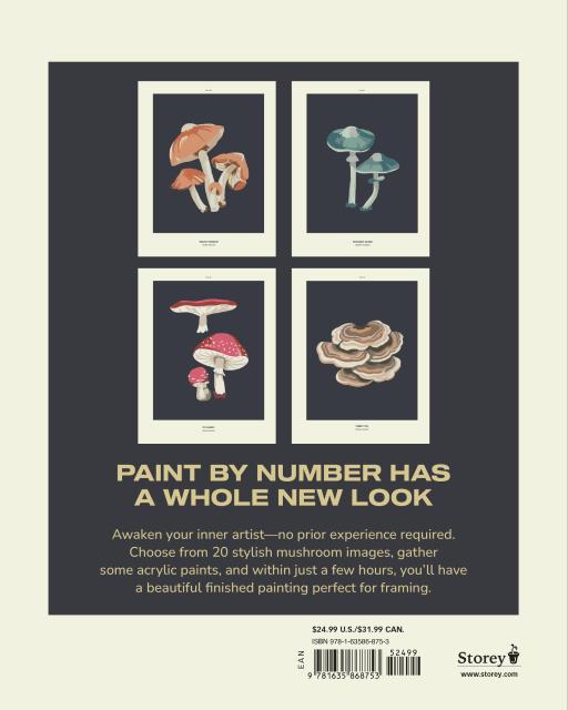 A fresh, modern take on paint-by-number features 20 frame-worthy mushroom images, accompanied by step-by-step instructions and humorous profiles of each mushroom.