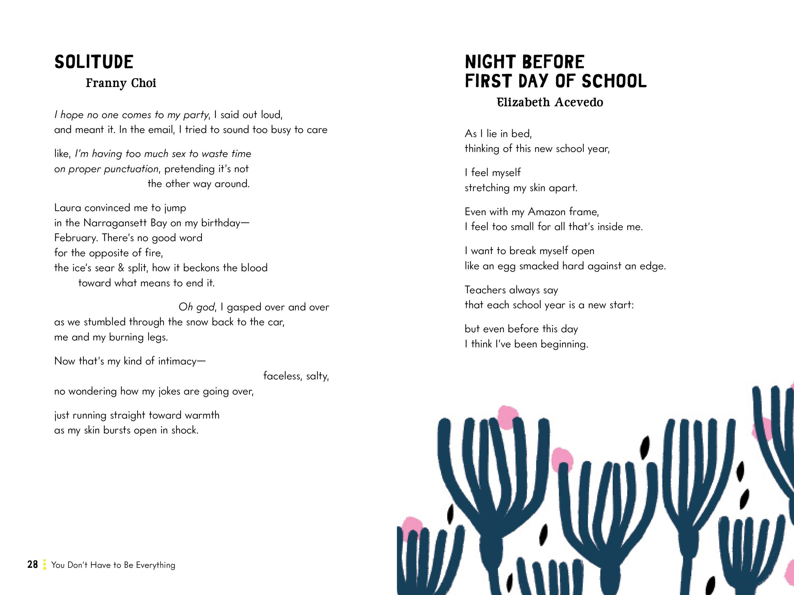 Created and compiled just for young women, You Don’t Have to Be Everything is filled with works by a wide range of poets who are honest, unafraid, and skilled at addressing the complex feelings of coming-of-age, from loneliness to joy, longing to solace, attitude to humor. These unintimidating poems offer girls a message of self-acceptance and strength, giving them permission to let go of shame and perfectionism.