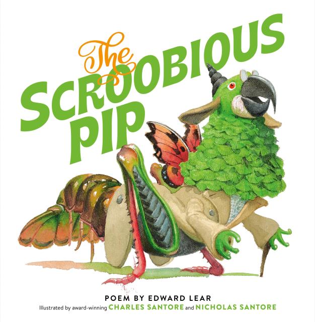 “Chippetty tip! Chippetty tip! Its only name is the Scroobious Pip.” Unfinished at the time of Edward Lear’s death in 1888, “The Scroobious Pip” is a fantastical journey into the world of beasts, birds, fish, and insects as these creatures try to determine what, exactly, the Scroobious Pip is. In the end, the Scroobious Pip’s unique nature is embraced and he is welcomed among all animals, fish, and insects. Award-winning illustrator, Charles Santore, crafted a fabulously clever interpretation of the illusive Pip before his death in 2019, and his son, acclaimed artist Nicholas Santore, has fully realized his father’s vision in the beautiful paintings that bring to life Lear’s humorous nonsensical poem.