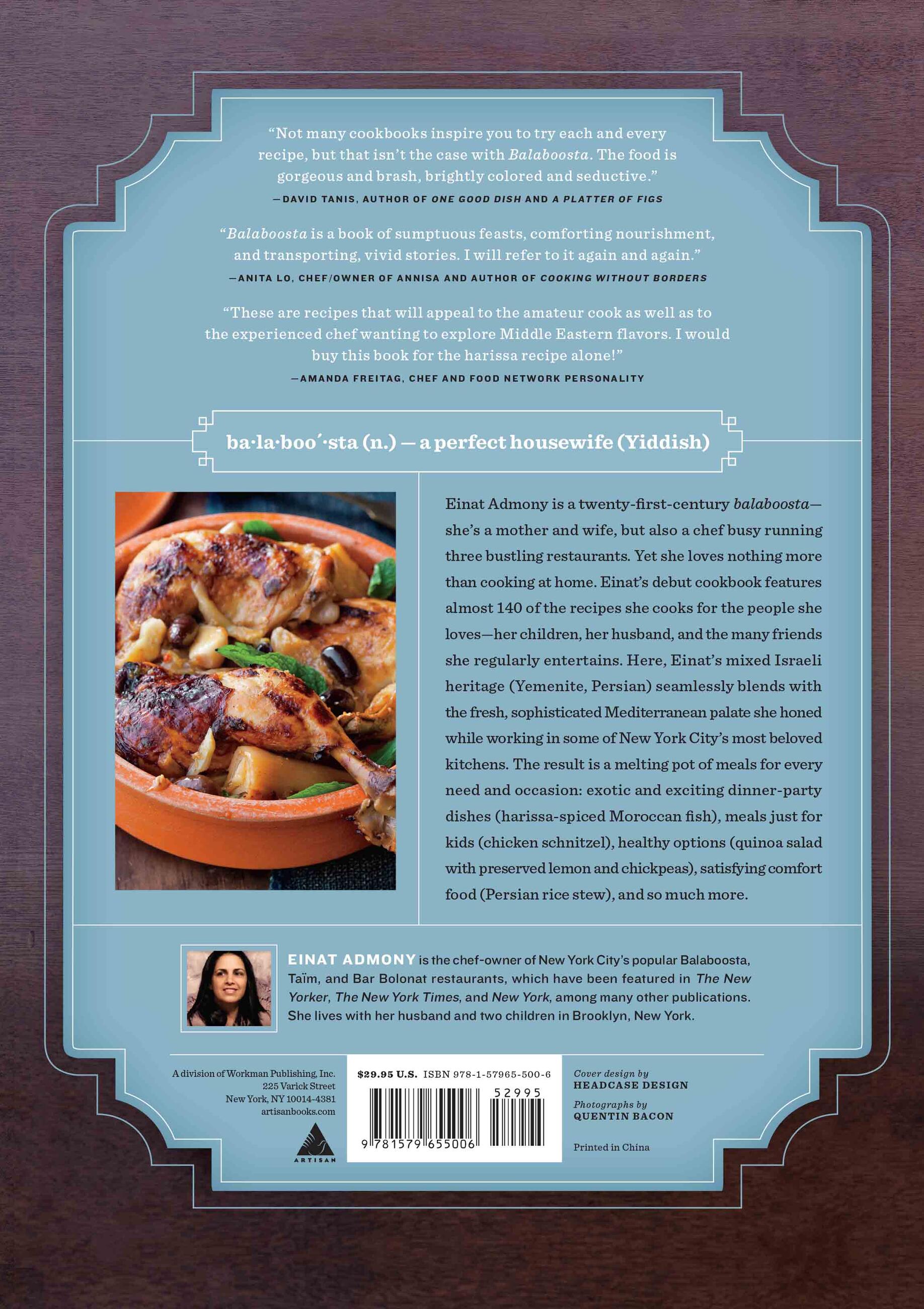 “A gorgeously cookable take on the kind of simple, sophisticated, intensely flavorful food I find myself always wanting to eat.”/I>Saveur.com“If you're looking for the Jewish-American dishes you grew up with or favorite Mediterranean dishes, you'll find many of them here. If you want something easy to put on the tonight's table or to serve at an upcoming dinner party, those kinds of recipes are here too. And if you've been to one of Einat Admony's restaurants and are hoping to see some favorites that you can make at home, yes, there's a whole chapter for you to plunder. There is something in Balaboosta for everyone.”/I>The Kitchn -