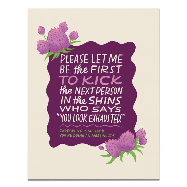 When people they say things like “you look exhausted!” they might think they’re being supportive. But trust us, no one wants to hear that, even if they are exhausted. (Maybe especially then?!) This greeting card lets the hardworking caregiver in your life know that you know just how hard it is to take care of other people day in and day out. Best of all, it’s going to make them laugh.