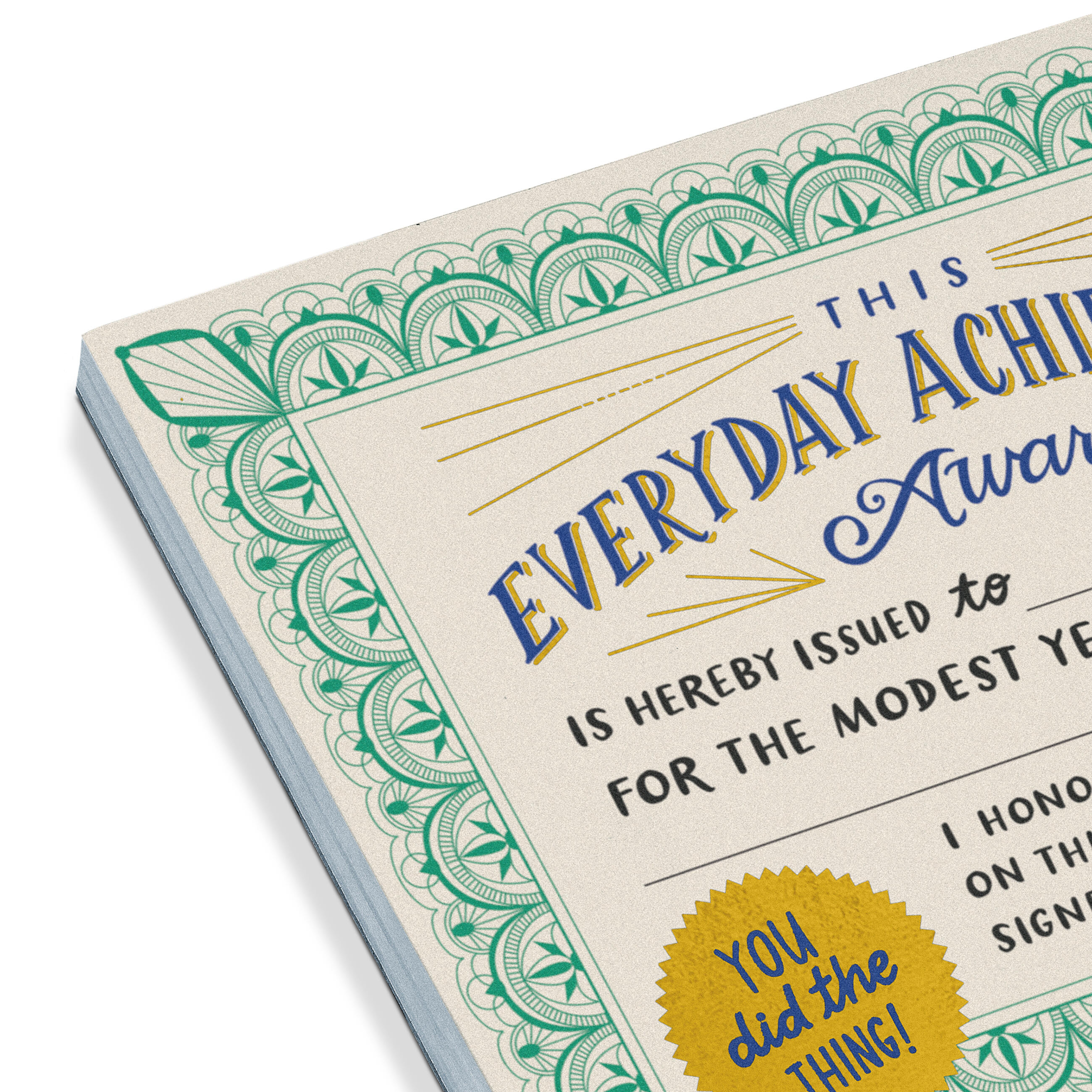 Perfect as a holiday gift! We’ve refreshed our Everyday Achievement Award with fancy gold foil and even-more official-ish design! Acknowledge others (or yourself!) for those minor huge accomplishments no one ever recognizes. Replacing the toilet paper. Finishing a long, boring book. Not shopping online during a Zoom meeting. The possibilities are infinite.