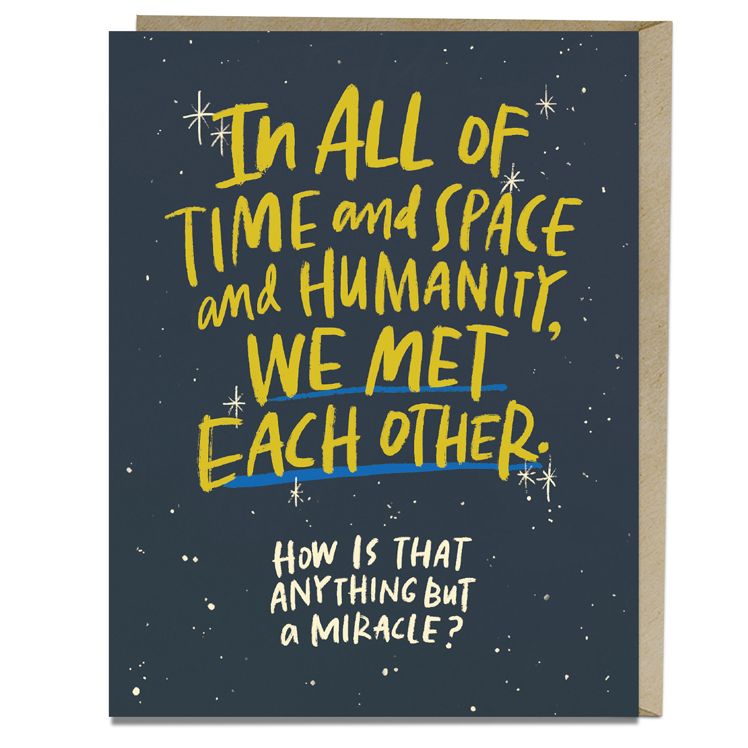 There are over 100 BILLION stars in our observable universe. There are 7.5 BILLION people on planet Earth. Even if Kevin Bacon is only six degrees away… you’ll probably never meet him. Yet, somehow, you and your person managed to find each other. That, friends, is truly a miracle.