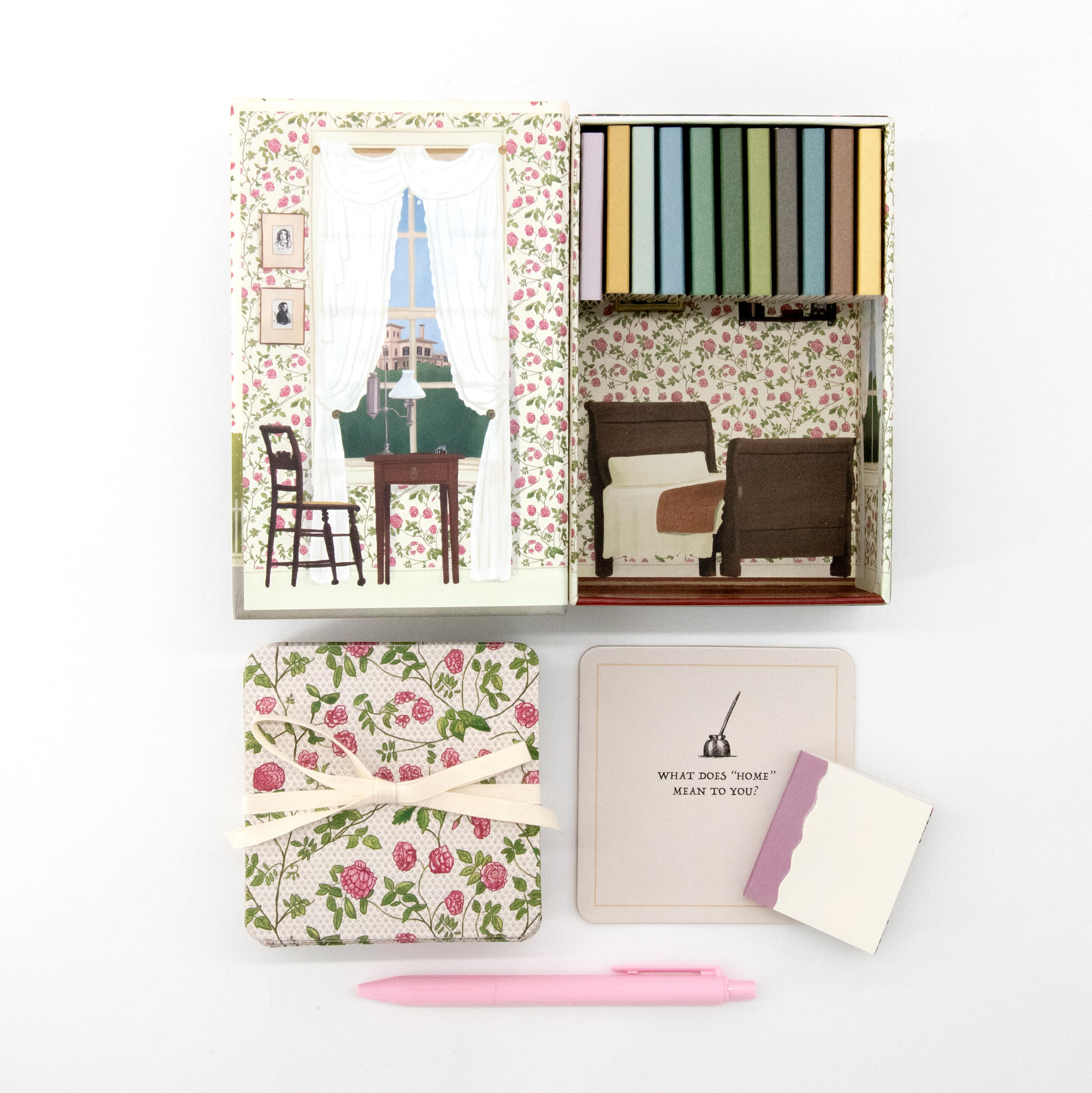 From the Desk of Emily Dickinson: A Library Kit is a hands-on celebration of one of America’s most beloved poets. At its heart is a miniature diorama inspired by Emily’s bedroom, her creative sanctuary and the place where she penned her poems. Alongside it are blank booklets for original writing, and a set of thought-provoking prompt cards inspired by Dickinson’s themes of nature, grief, joy, and inner life. The kit invites users to slow down and connect with their own voice, just as Emily did.