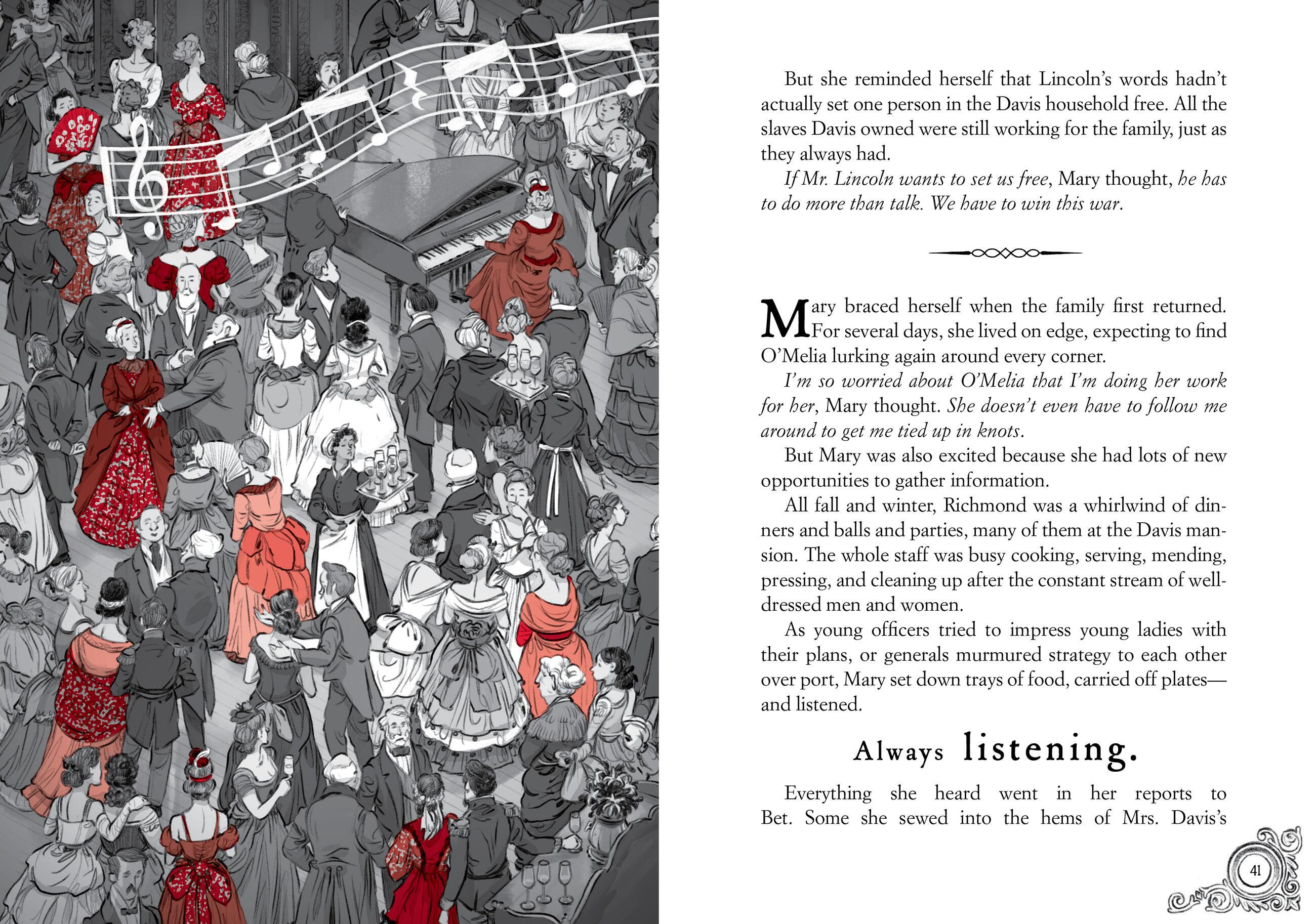 It’s a mystery to solve: There are clues embedded in the story’s text and illustrations, and Spycraft materials—including a replica Civil War cipher wheel—come in an envelope at the beginning of the book. Use both to discover what happened to Mary Bowser’s secret diary.