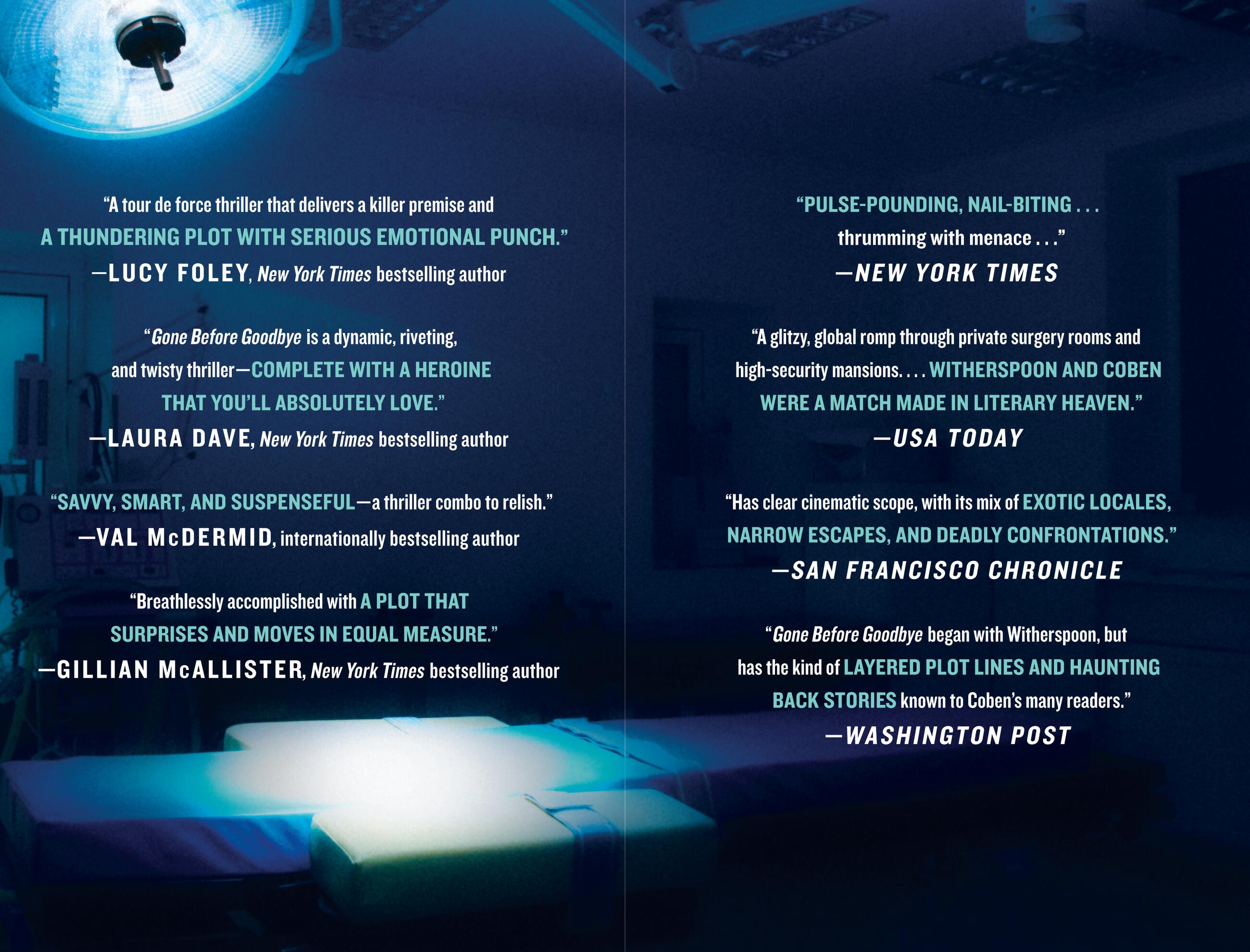 “A glitzy, global romp through private surgery rooms and high-security mansions…. Witherspoon and Coben were a match made in literary heaven."USA Today