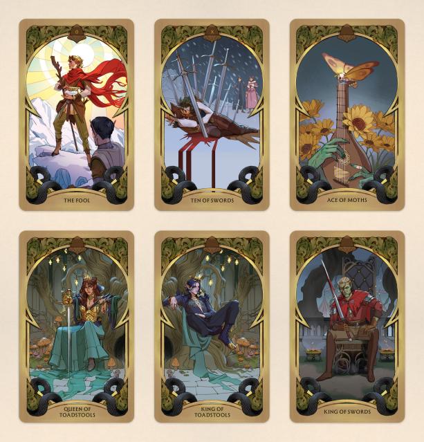 - RICHLY REIMAGINED CARDS AND SUITS: The traditional tarot has been transported to Holly Black’s Faerie for this deck, transforming some cards (such as Mithridatism for Temperance and Faerie Fruit for The Devil) and suits (Moths for Wands, Goblets for Cups, and Toadstools for Pentacles) to bring this world to vivid life.