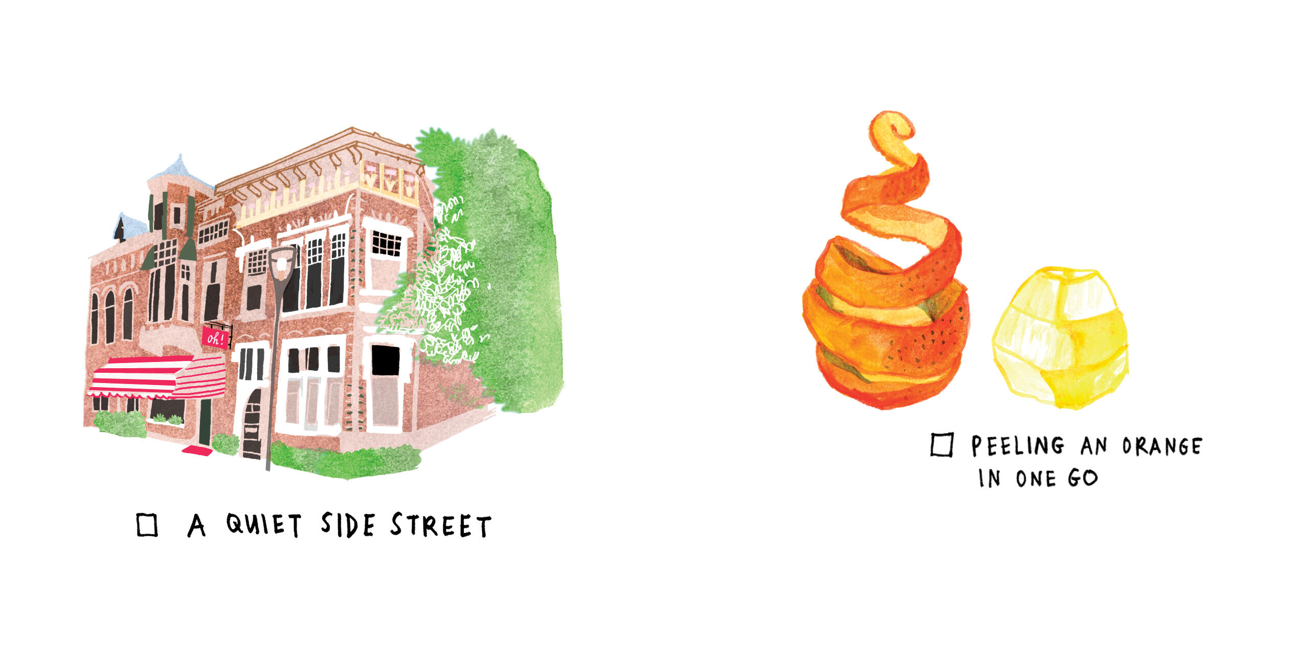 A perfect gift book filled with whimsical, colorful illustrations, short lists, cheerful prompts, recipes, and fun facts, The Tiny Book of Tiny Pleasures is the sweetest reminder imaginable that it’s the little things in life that make us happy. Little things like sharing tea with a friend. An ice cream cone with sprinkles. Finding a forgotten item of clothing in the closet. The smell in the air right after a summer rain.