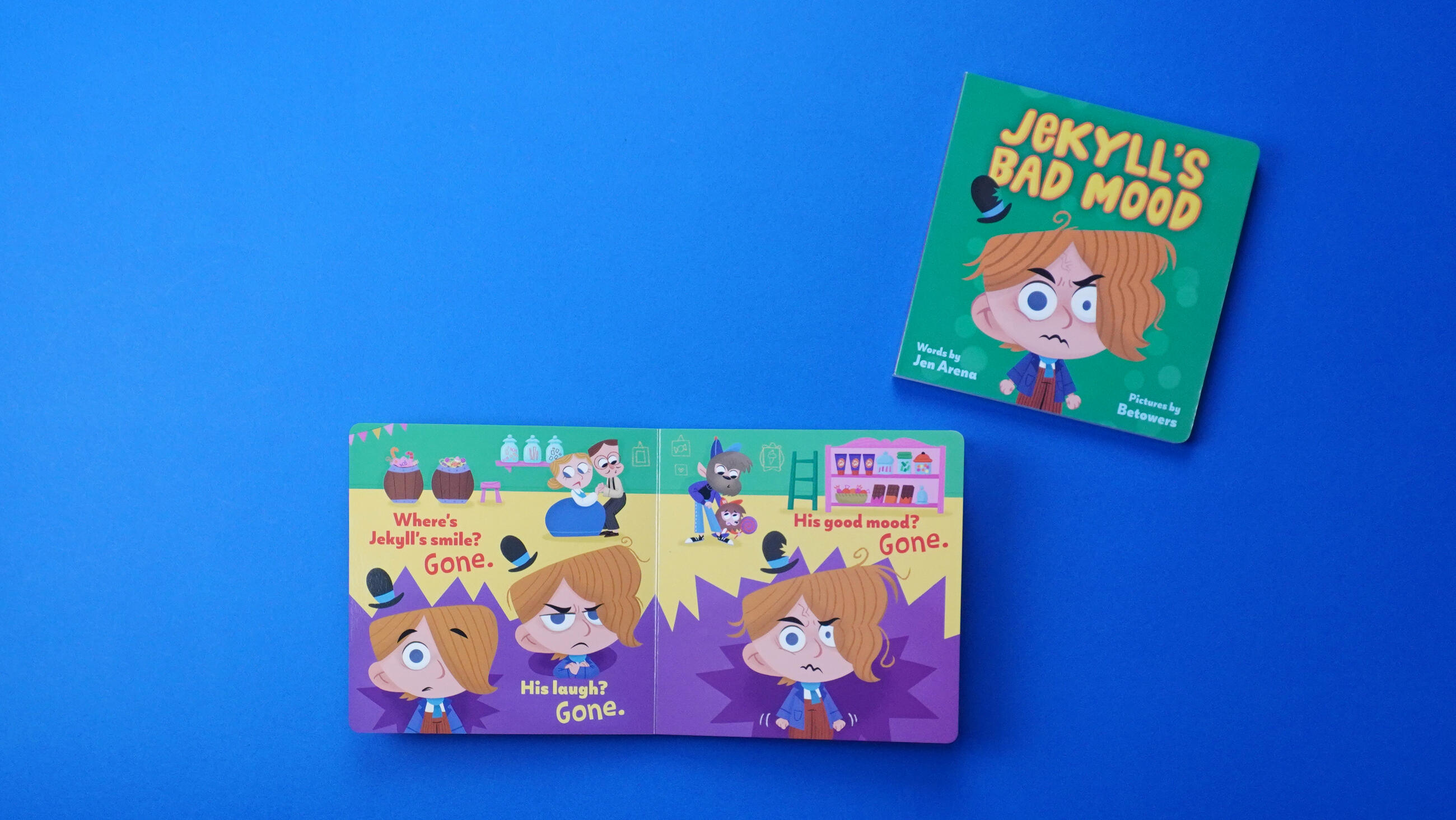 Jekyll’s having a bad day–uh oh! When Jekyll and his friend, Wolfie, go to the candy store and there is only one lollipop left and Jekyll’s bad mood side–Hyde–takes everyone by surprise! After a little time and some big emotions, Jekyll and his parents learn to navigate the highs and lows of big moods. Perfect for parents to share with young readers who are experiencing their own firsts, Jekyll’s Bad Mood presents an early childhood milestone through a classic literary monster.