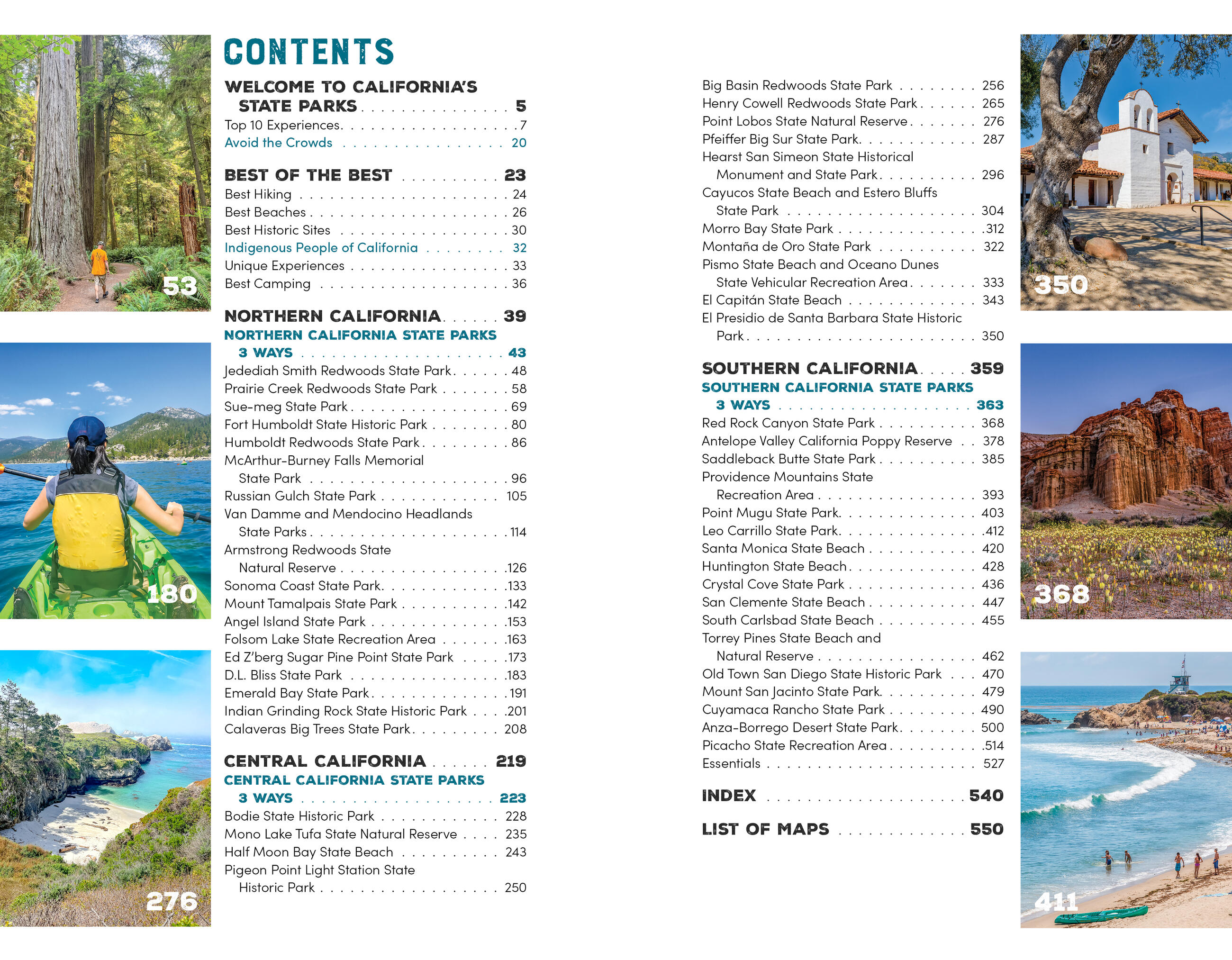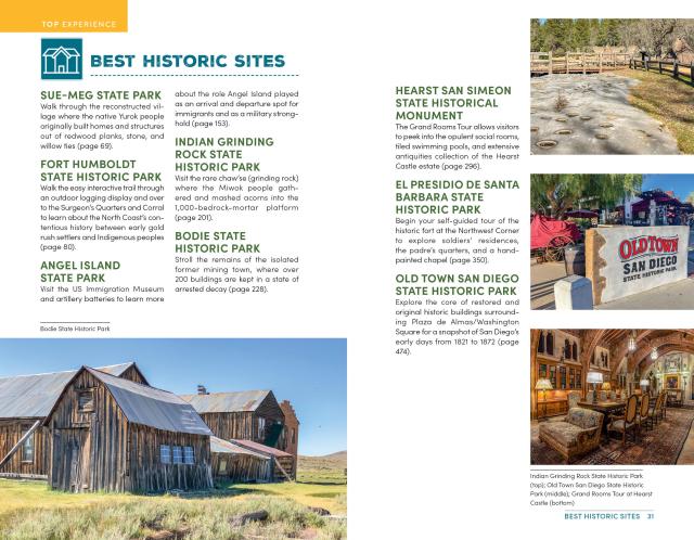 - Coverage of 50 California state parks and historic sites, organized by region