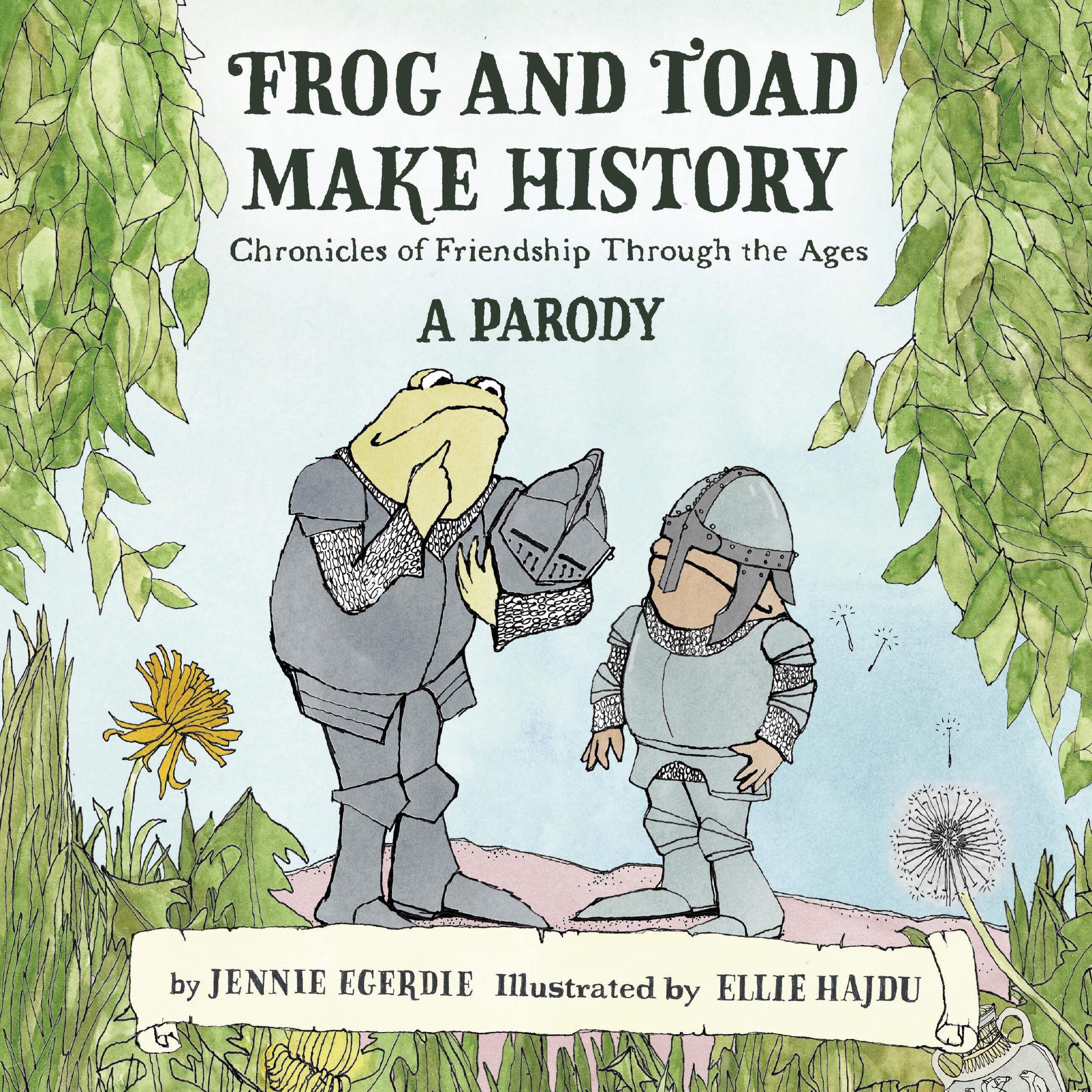 With tender-hearted humor, author Jennie Egerdie transports us away from the chaotic present day with her latest parody, Frog and Toad Make History. She channels charms of Arnold Lobel’s iconic duo as she posits how they’d react to moments throughout history, starting as cave amphibians and continuing through ancient Greece, the Middle Ages, the Industrial Revolution, and more. Together, they arrive just a little too late to take in the sights of the Roman Empire. And of course Toad of panics during the Salem Witch Trials, spotting witchcraft everywhere. When newfangled telephones arrive on the scene, Frog can’t help but think he’s doing a great service to his friend by having one installed in Toad’s home. Through these stories, it becomes clear that though the past may have been simpler times, they were no less chaotic. The key to getting by is approaching each new day with warmth, kindness, just a little bit of silliness, and—of course—having a best friend at your side.