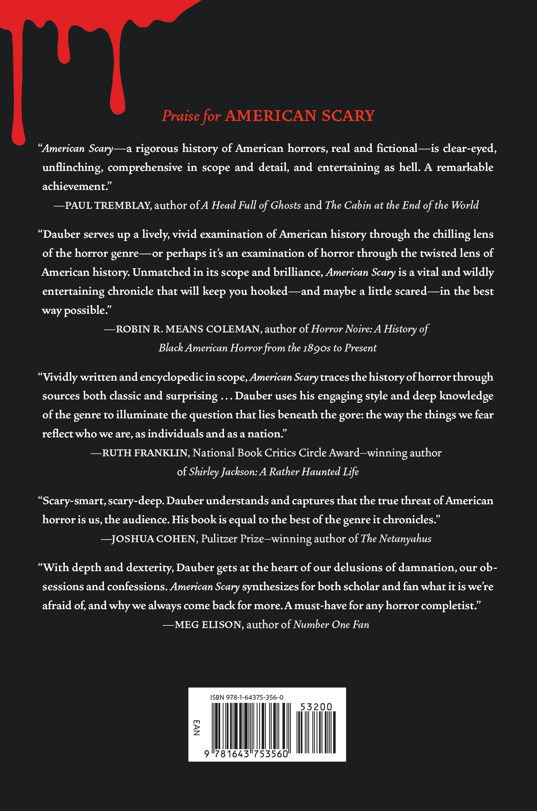 “Scary-smart, scary-deep. Dauber understands and captures that the true threat of American horror is us, the audience. His book is equal to the best of the genre it chronicles.”Joshua Cohen, Pulitzer Prize-winning author of The Netanyahus