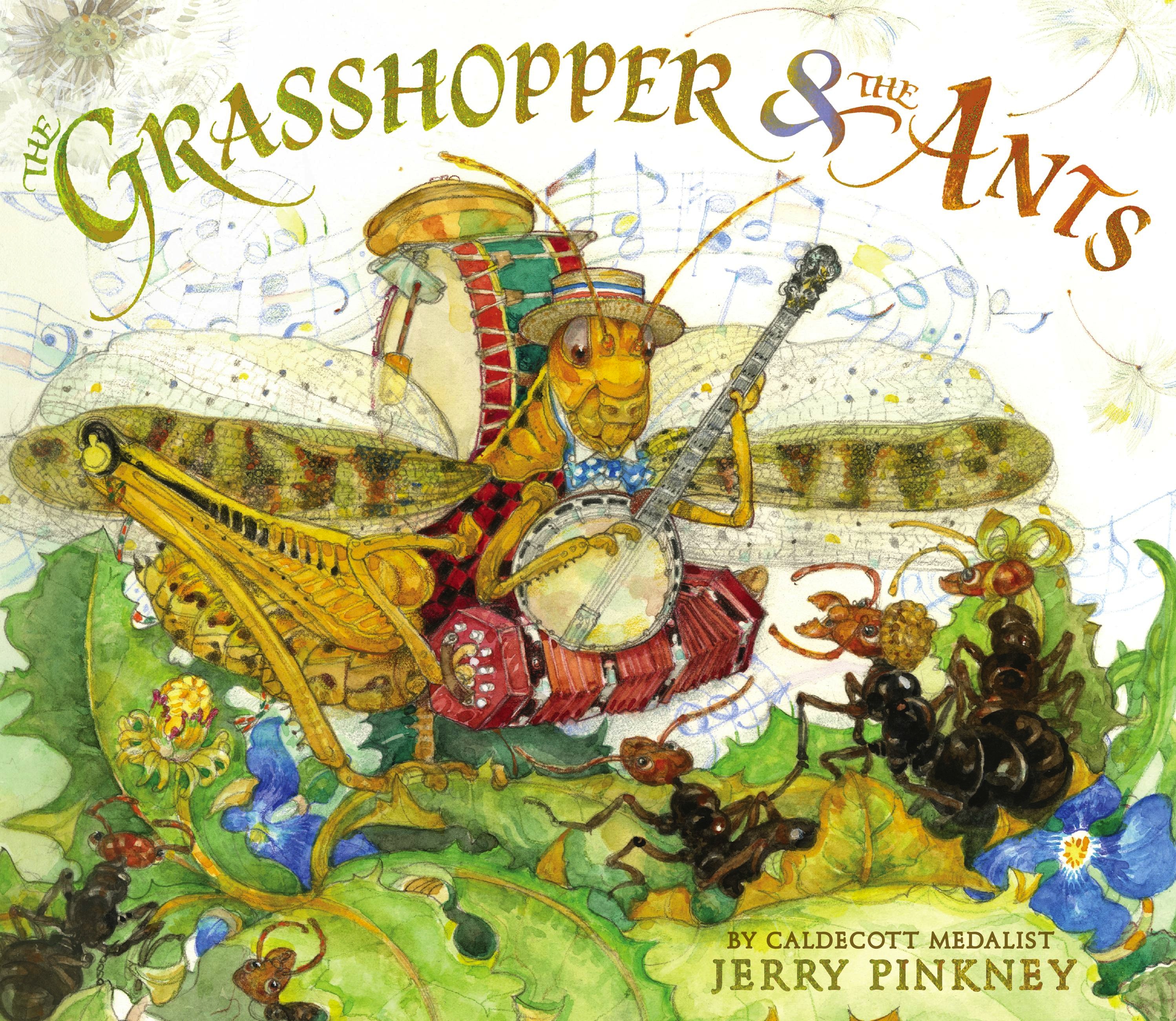 In this stunning companion to the Caldecott Medal-winning The Lion & the Mouse and the highly acclaimed The Tortoise & the Hare, a playful grasshopper wonders why the busy ants around him won’t join in his merrymaking as the seasons pass by. But when winter arrives, he soon sees the value of his friends’ hard work–just as the ants learn the value of sharing what they’ve worked for. Featuring a striking, surprise gatefold page, this third book in Jerry Pinkney’s gorgeous trilogy of picture book fables subtly shows the pitfalls of procrastination.