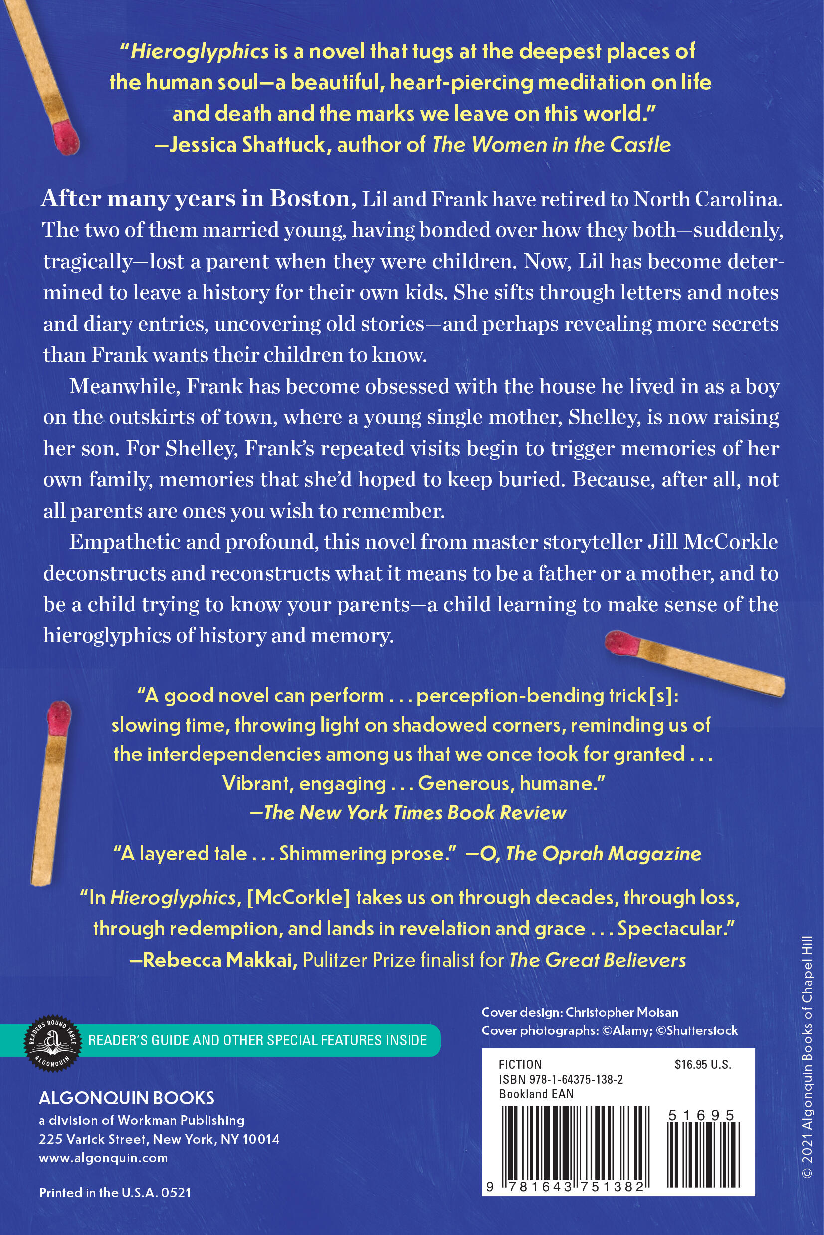 “No one has a more captivating storytelling style than McCorkle, and her narrative gifts are on full display in Hieroglyphics. As in her previous novel, Life After Life, she does a masterful job of weaving a whole from many parts. Revelations about all the characters arrive slowly, finally reaching a conclusion that is fully satisfying, as soaked in love and sorrow as every human life.”
