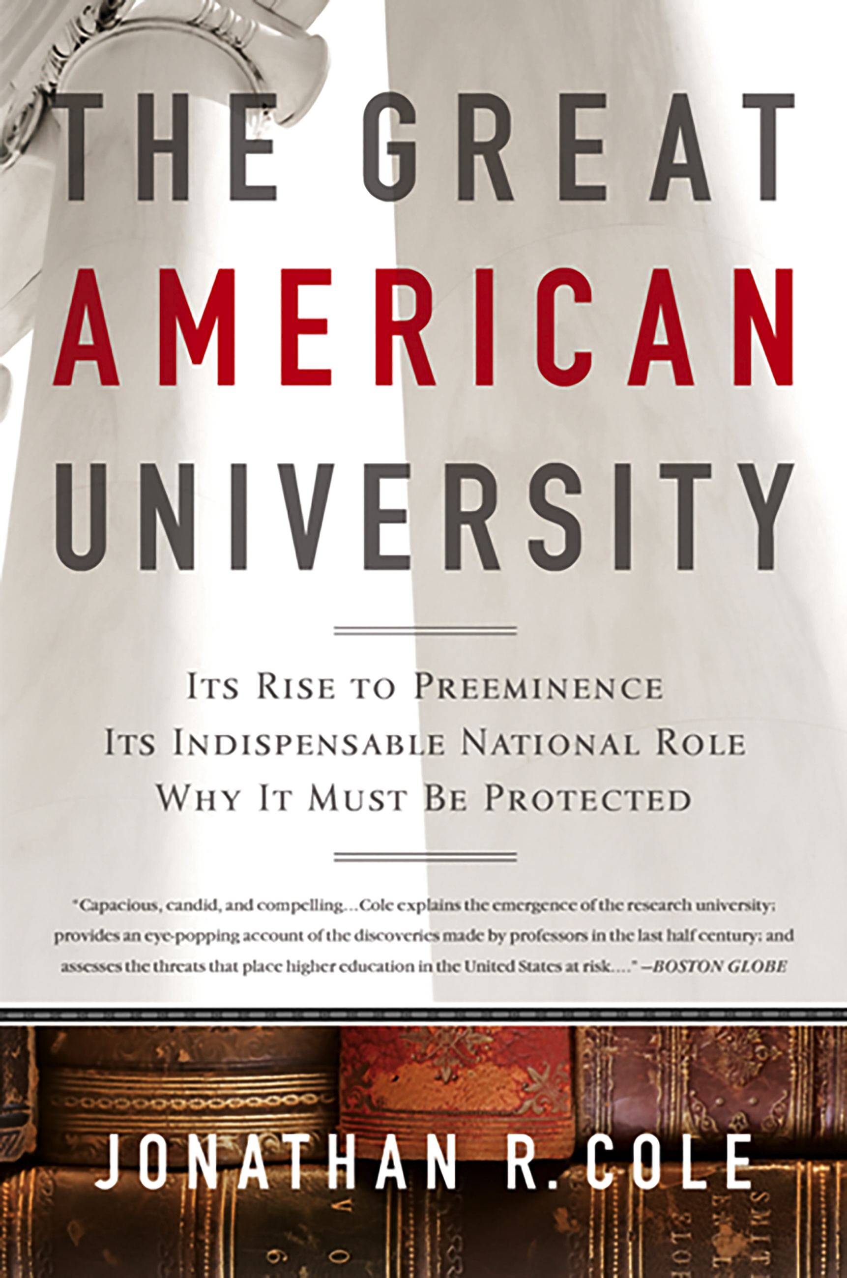 As provost of Columbia University for 14 years and a professor of sociology and dean of faculties before that, Jonathan R. Cole is an excellent position to write about the rise of the American research university and its special contribution to American life. In The Great American University,” he makes a case for the extraordinary role such institutions play in improving our daily lives. He also argues that these jewels in our nation's crown face a host of serious threats.'”