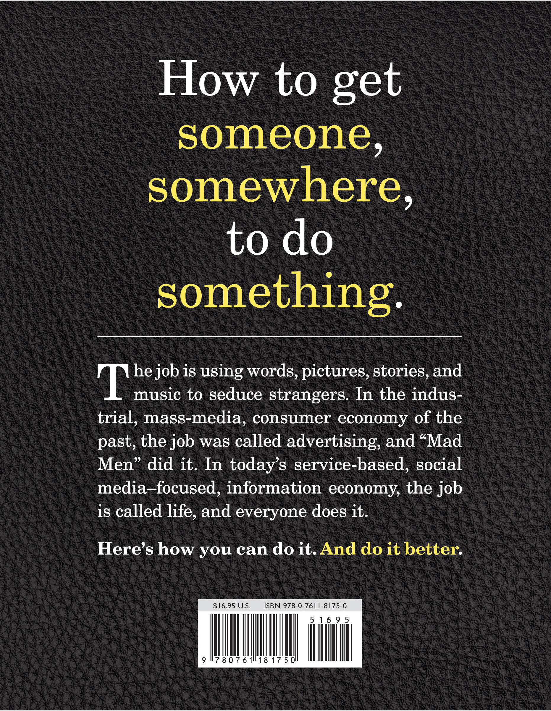 The job is using words, pictures, stories, and music to seduce strangers. In the industrial, mass-media, consumer economy of the past, the job was called advertising, and “Mad Men” did it. In today’s service-based, social media-focused, information economy, the job is called life, and everyone does it.