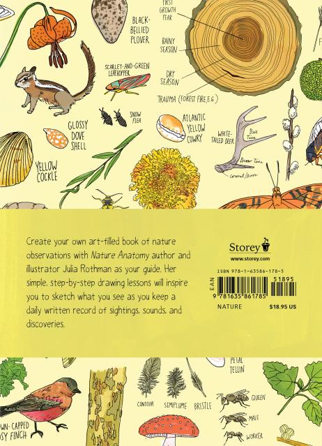 Rothman leads fans deeper into nature observation with her specially designed record pages for tracking daily nature sightings throughout the seasons. Her step-by-step technique tutorials for drawing a flower, a dragonfly, a robin, and much more, along with blank sketchbook pages, will inspire nature lovers and art enthusiasts of all ages to take up their own colored pencils or favorite pens and create their own unique Nature Anatomy Notebook.