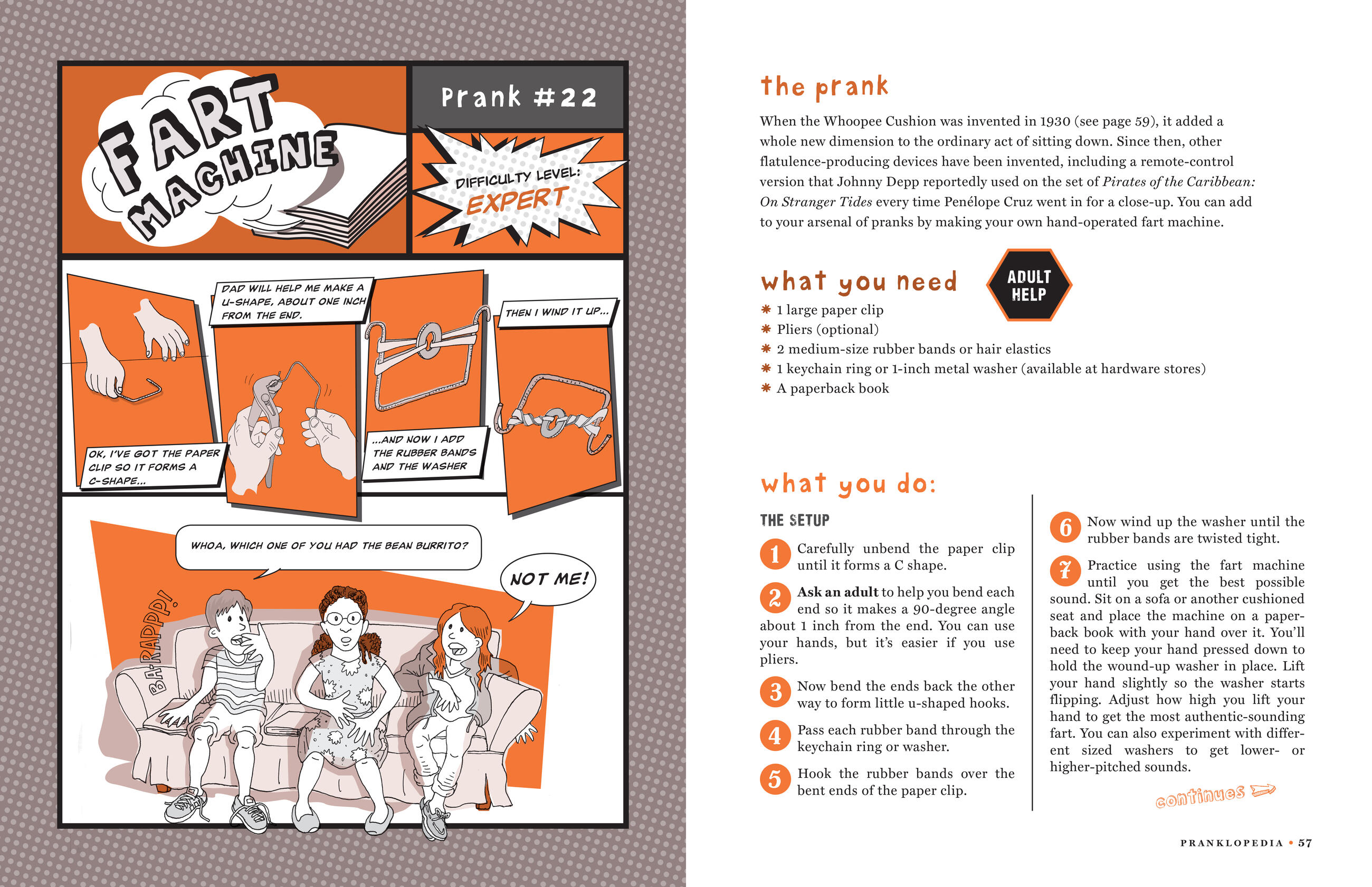 A complete prankster’s guide, Pranklopedia also provides a four-part lesson on how to pull the perfect prank and tells you what to do when pranks go bad: 1. Disappear for a while . . .