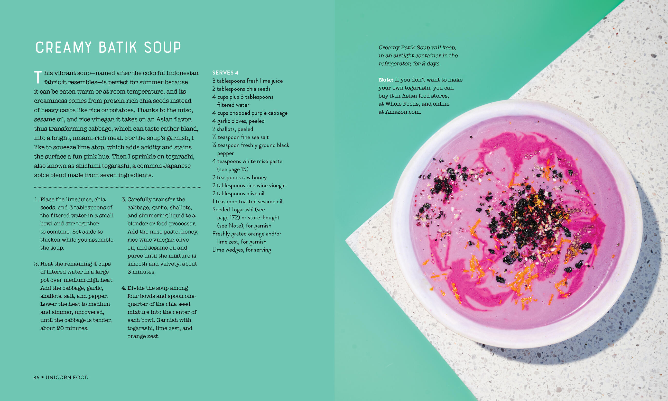 Filled with dazzling full-color photographs, and published in a package as special as the dishes themselves, Unicorn Food is a cookbook of real beauty, in the look, in the recipes, in the spirit of the food itself.