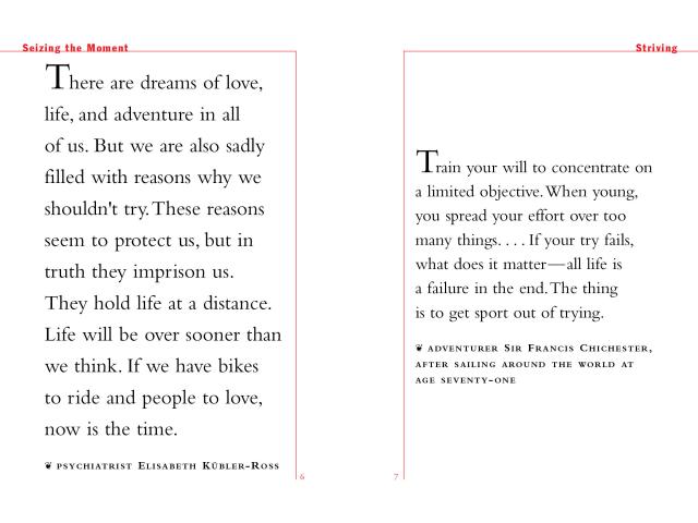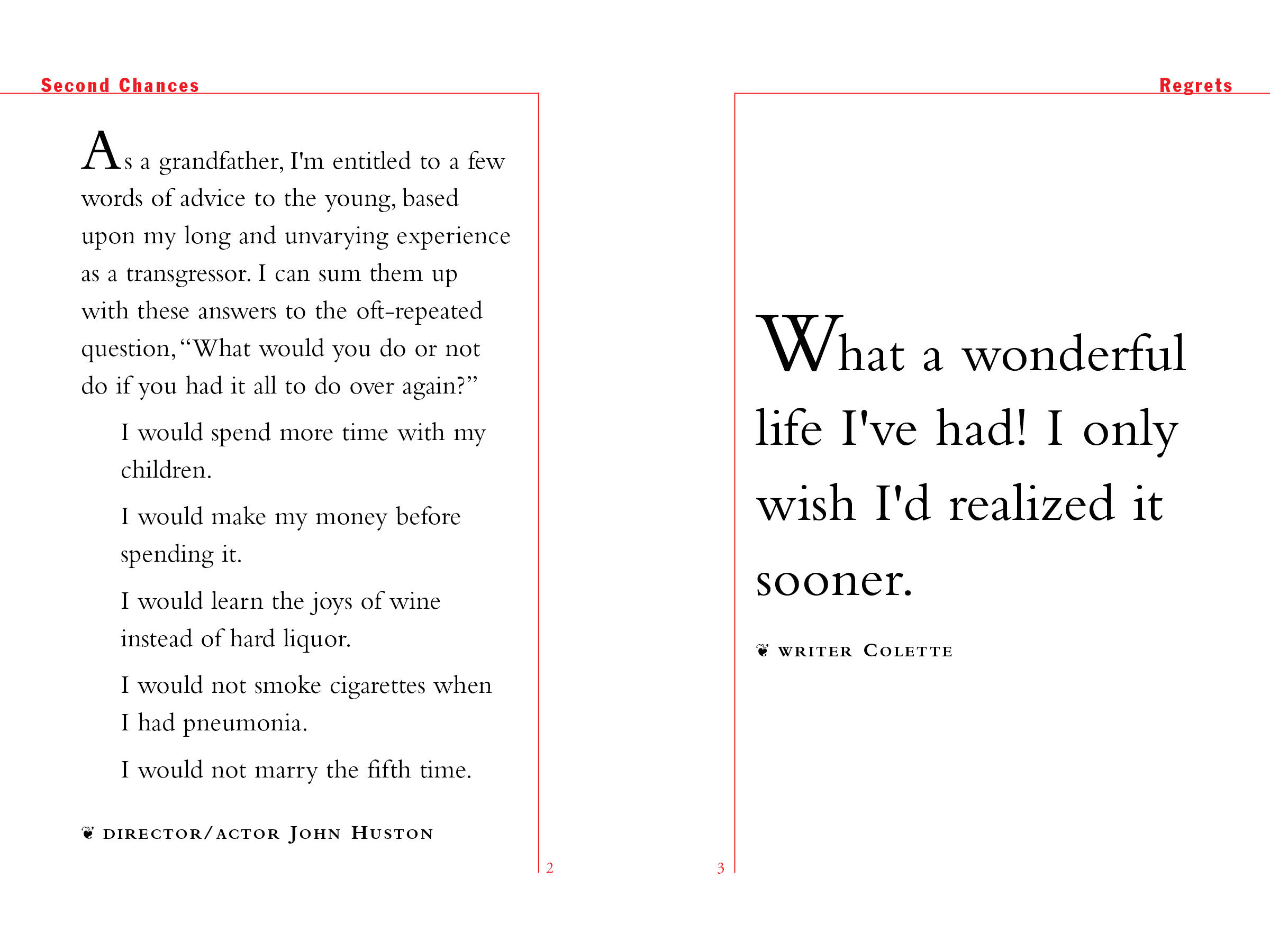 Collected by Kathryn and Ross Petras, who have a perfect ear for quotes, Age Doesn’t Matter Unless You’re A Cheese brings together Albert Einstein’s equation for happiness, Colette’s thoughts on the virtues of astonishment, and Julia Child’s secret of longevity: “Red meat and gin.”