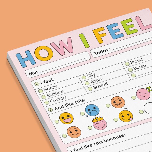 Sometimes we’re happy. Sometimes we’re grumpy. Sometimes we’re just plain bananas! We all feel so many emotions, it can be hard to sort them out (even for us grownups!). This pad’s fun feelings chart helps kids identify-and maybe even understand-their emotions, and have some fun while they’re at it!