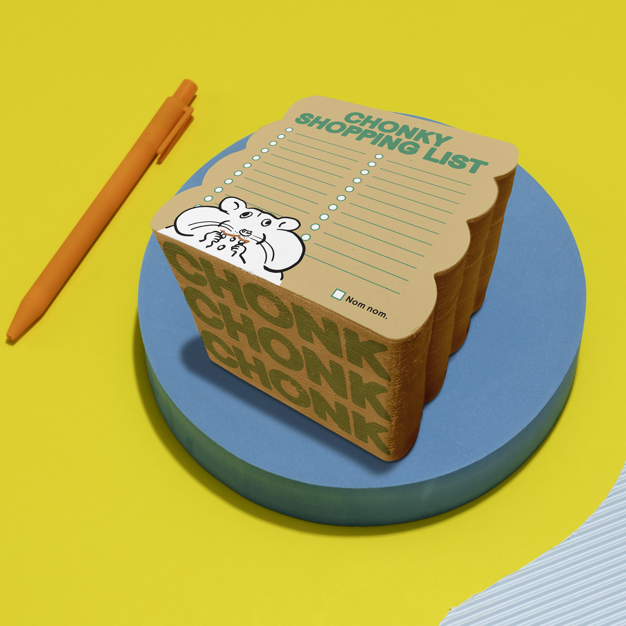 This adorable grocery list pad is cute, cheerful & oh-so chonky! It’s right for jots, checklists, shopping lists, doodles . . . and doubles as a notepad paperweight. Chonk yeah!