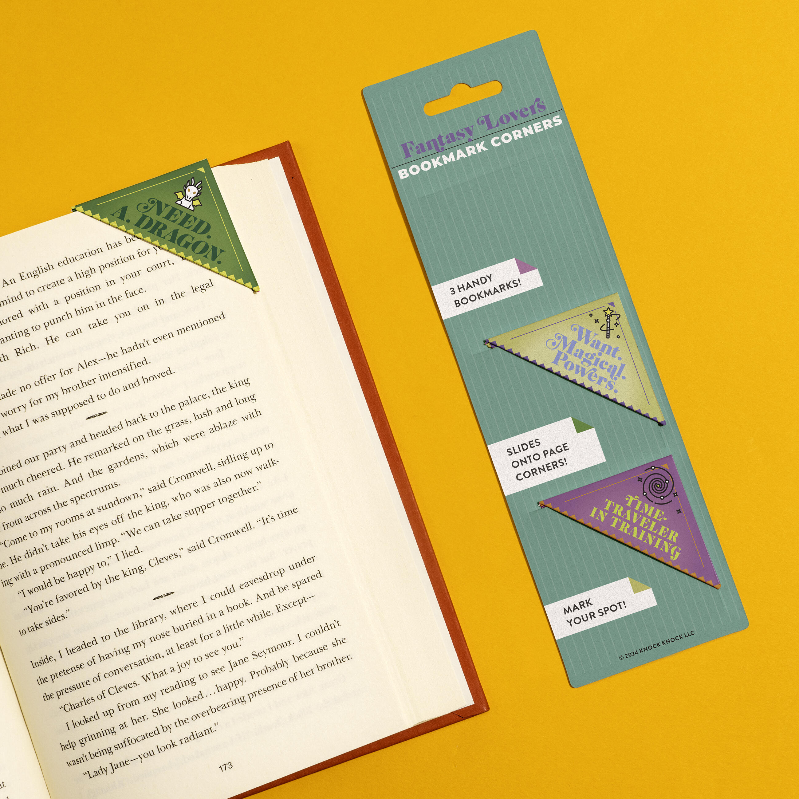 Book lovers agree: you can never have too many books . . . or bookmarks! These unique corner bookmarks hold your spot, prevent dog-ears, and let you self-identify as a fantasy fiction superfan!