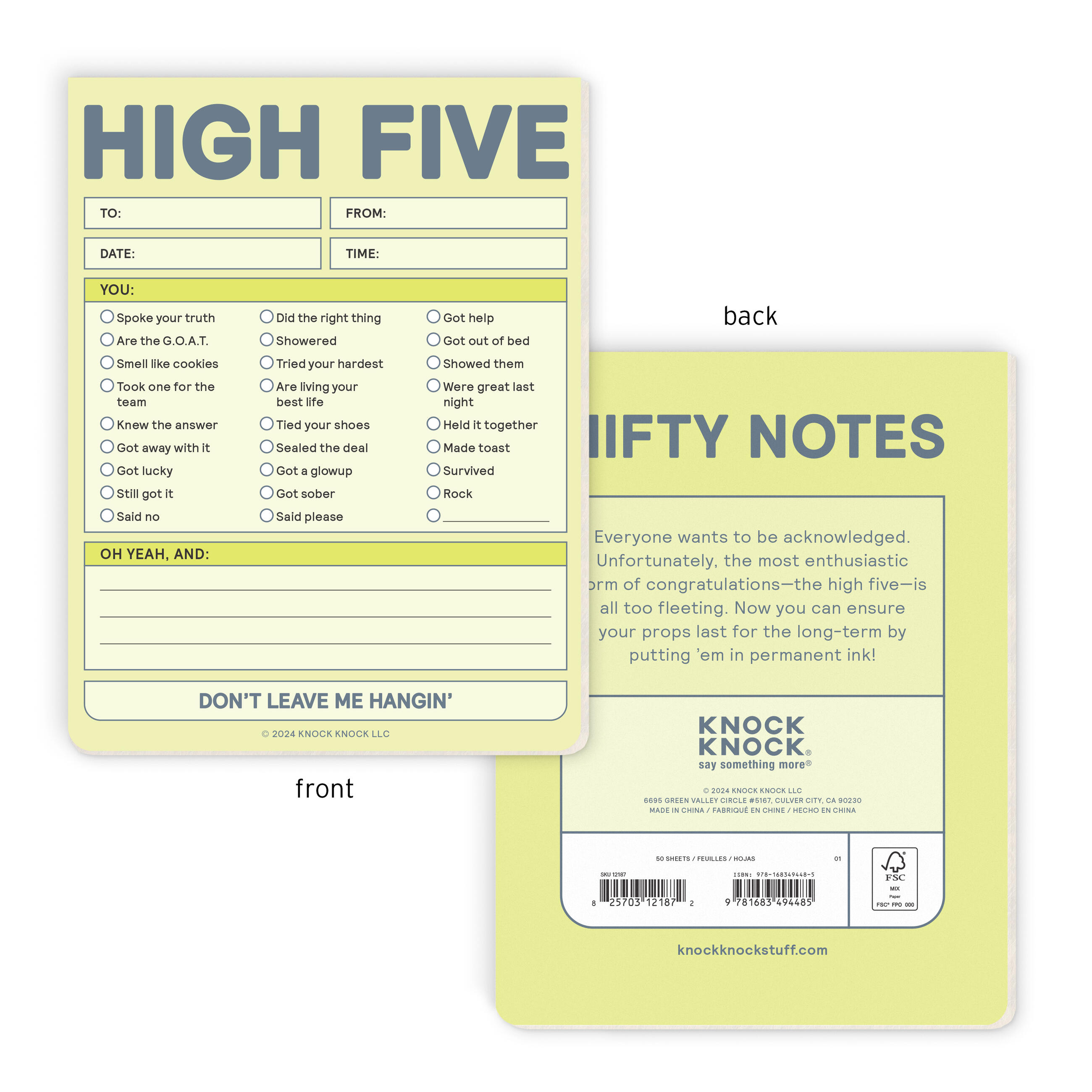 What could be more satisfying than congratulating someone with a classic high five? Unfortunately, this tried-and-true greeting is depressingly short-lived. Maximize avowals of approval with our High Five Nifty Note—guaranteed to outlast even the most overzealous verbal praise.