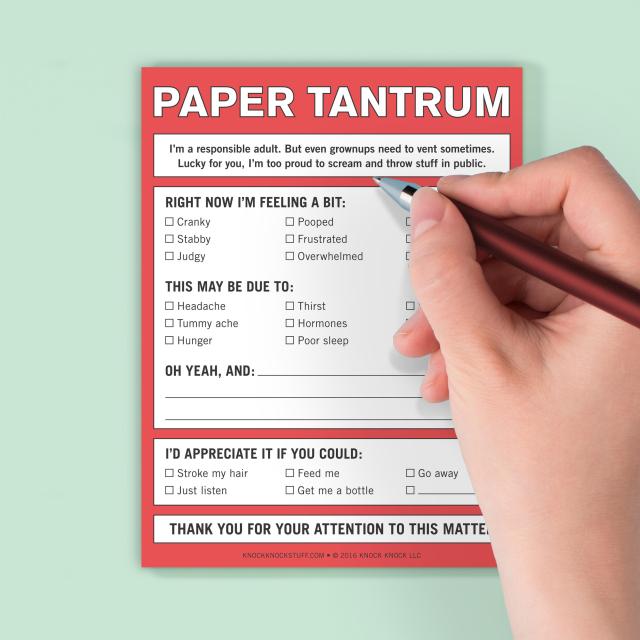 When it comes to meltdowns, babies get all the excuses: “She’s hungry.” “He’s overtired.” “She needs a change.” Reclaim your right to throw a fit at any age with this expressive pad, while maintaining your reputation for professionalism and maturity.