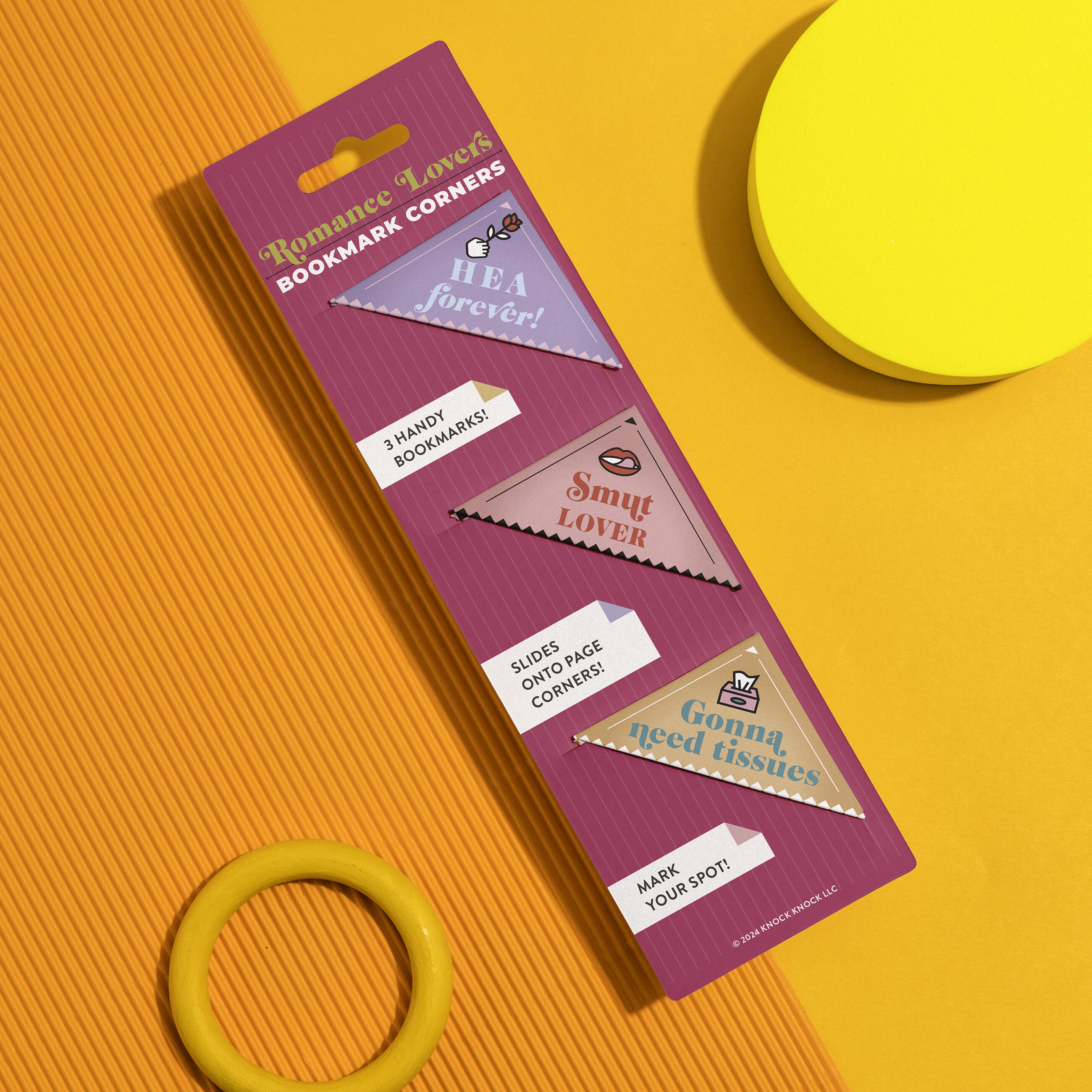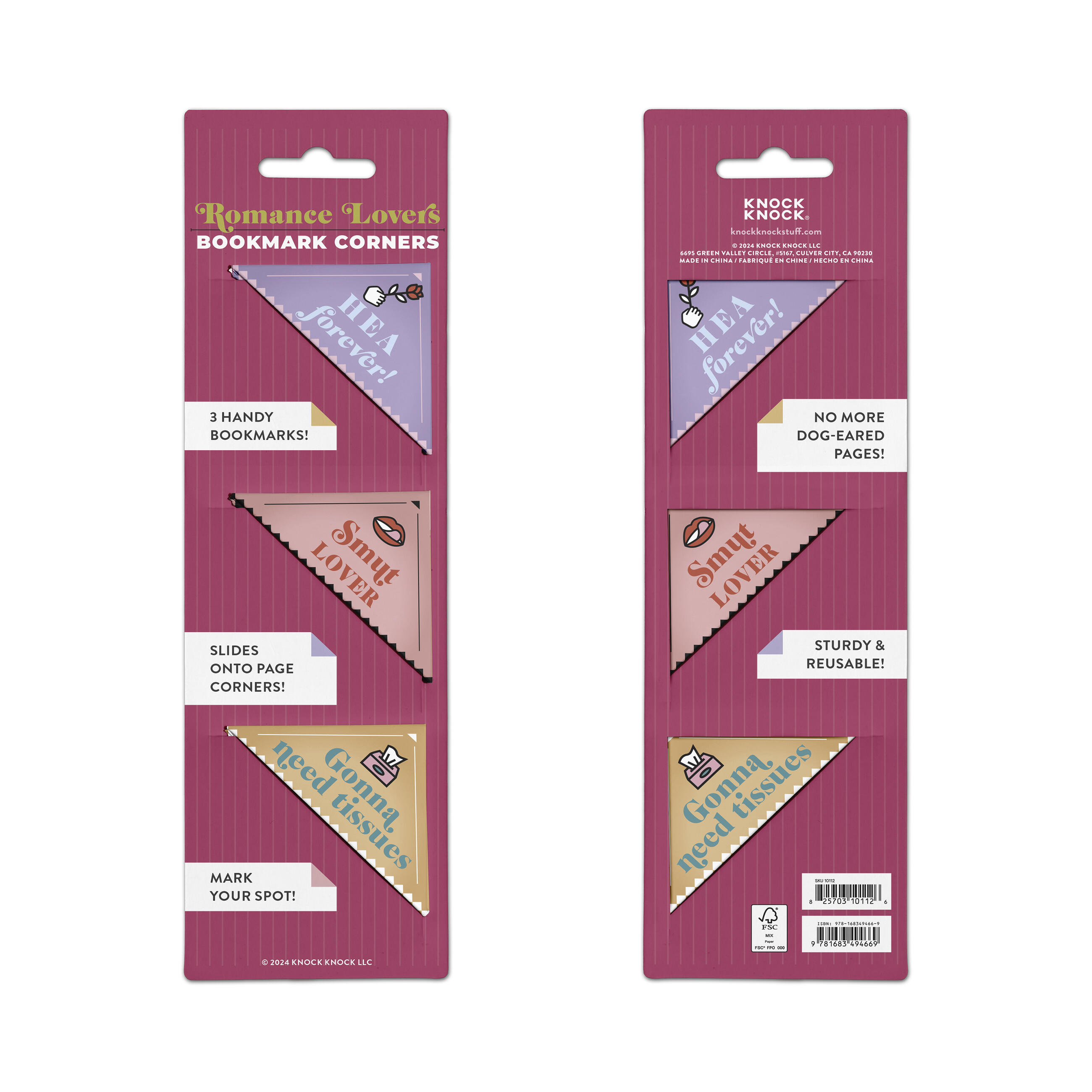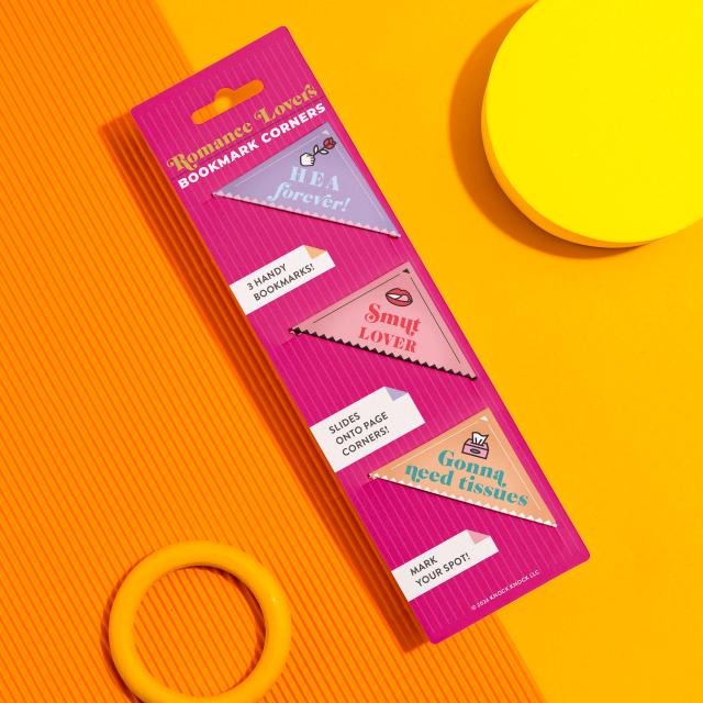 Book lovers agree: you can never have too many books . . . or bookmarks! These unique corner bookmarks hold your spot, prevent dog-ears, and let you self-identify as a romance fiction superfan!