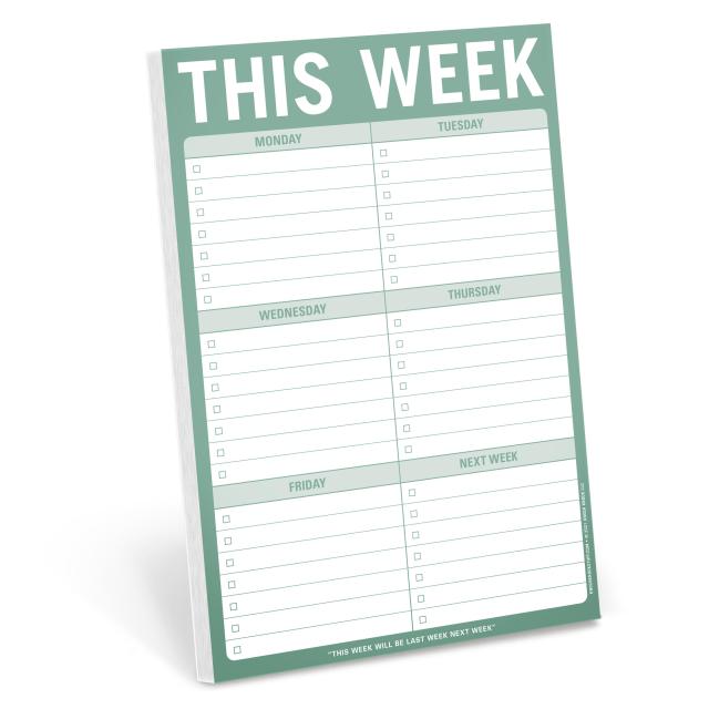 Don’t let yet another 168 hours of your life get away from you. This purpose-driven weekly calendar planner pad lets you organize your daily affairs and monitor the big picture at the same time. You can even get a jump on next week’s tasks as you maximize efficiency over and over—and over—again. Now in gorgeous green—yay!