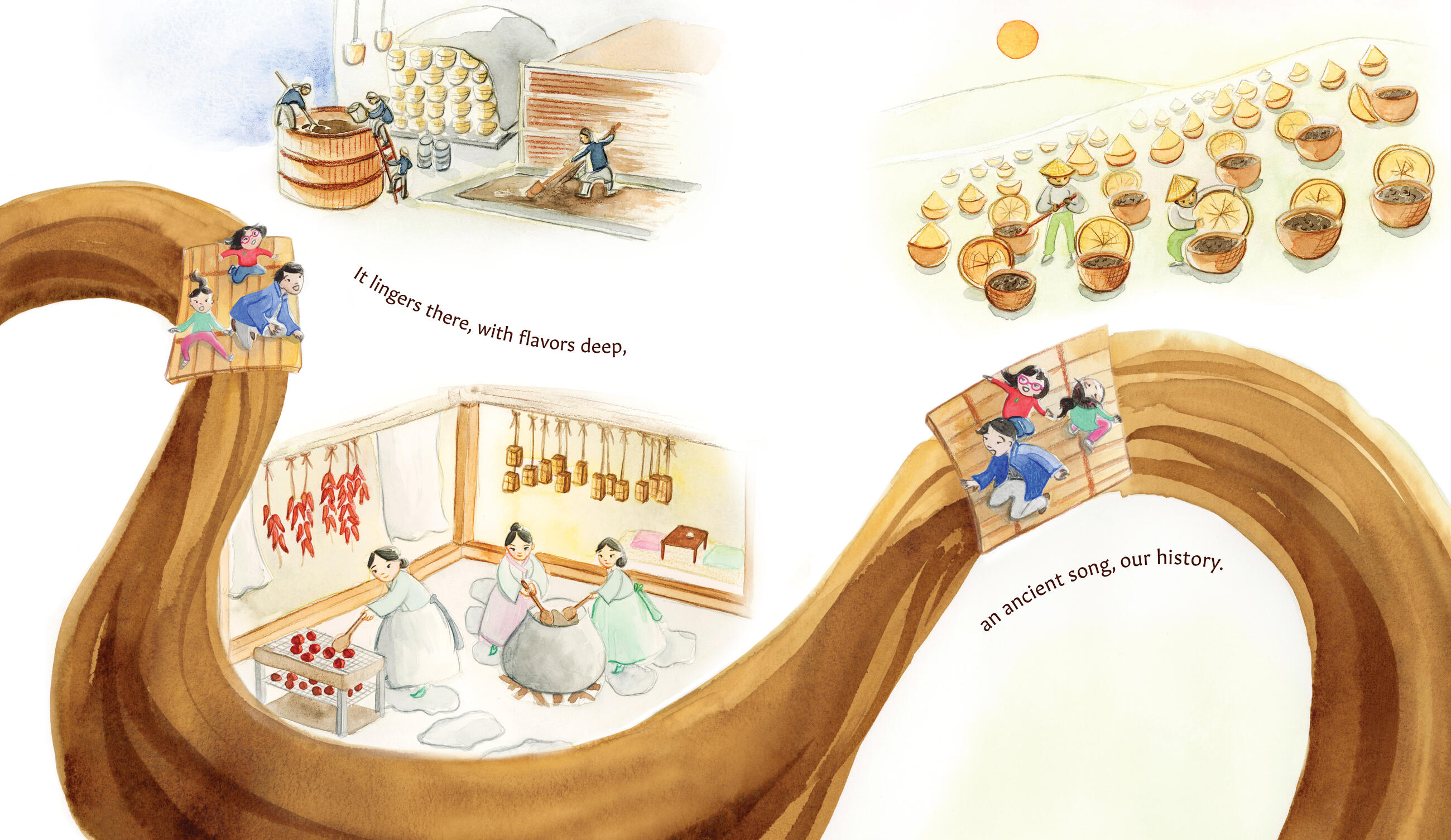 * "Lee’s lively watercolor illustrations of the children gleefully celebrating each stage of the long process pair beautifully with the upbeat text for an informative, engaging story.... A joyful ode to soy sauce that’s delicious to the last drop."Kirkus Reviews, starred review