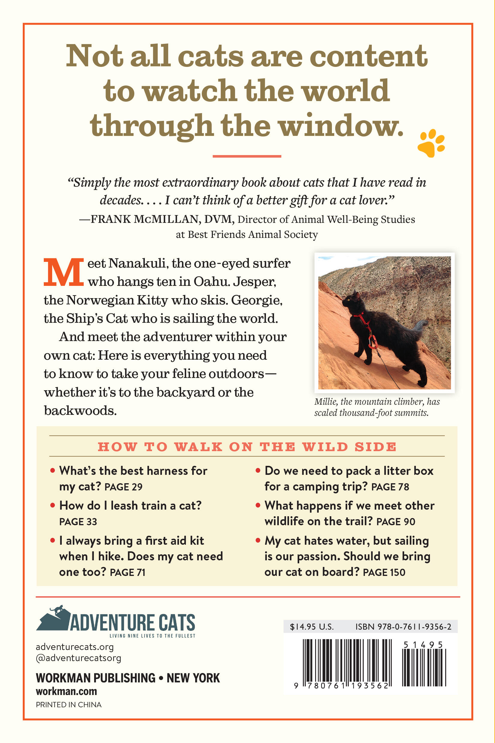 When animal writer and active hiker Laura Moss couldn’t find an online resource for hitting the trail with her cat, she created one. AdventureCats.org took off like wildfire, with attention from Wired, the Huffington Post, Outside magazine, BuzzFeed, and much more. Now, the book Adventure Cats—a collection of jaw-dropping photographs, inspiring stories of real-life cats, and all the how-to a cat owner needs—will take readers and their cats well beyond the backyard. Learn how to leash-train a cat. What to do if you encounter wildlife on the trail. Plus, winter safety tips, and how to bring a little bit of the outdoors to an indoor cat.