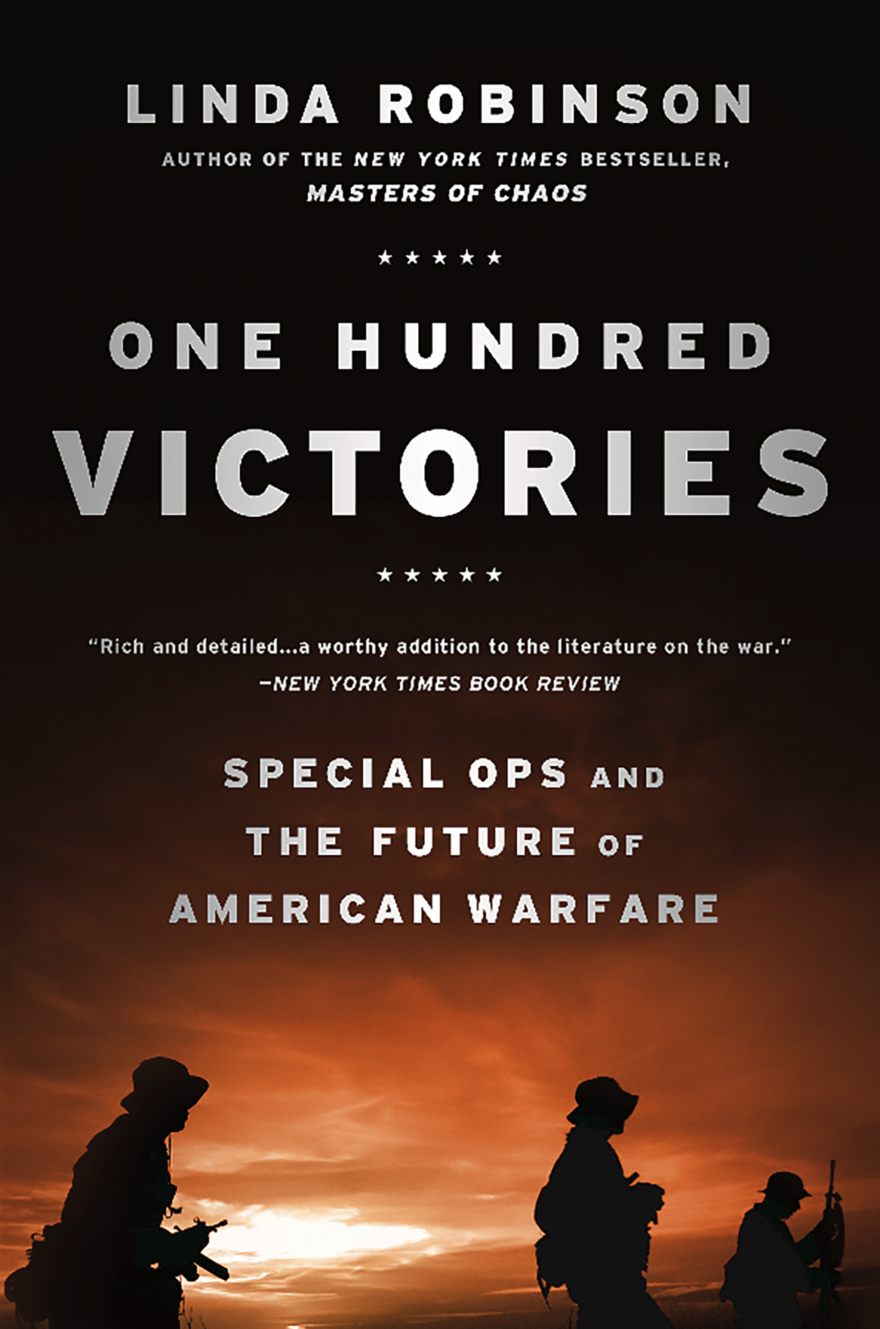 Linda Robinson has enhanced her well-deserved reputation as an acclaimed military expert with her latest work, One Hundred Victories. She has appreciably added to the understanding of America's intrepid special operations forces, the quiet professionals' in Afghanistan One Hundred Victories is Robinson's third book and perhaps her best work to date. The book is a compelling group portrait of America's most dedicated warriors, and it will appeal to both serious and not-so-serious historians alike, as well as the casual observer looking for a good read.”